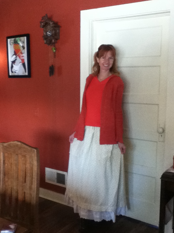 Farmgirl fashions have not changed much in the past couple hundred years. Maybe our bloomers and corsets have been replaced with Victoria Secrets (a farmgirl has to feel a little sexy while shoveling manure) but the outer layers remain the same. Such practical clothing has endured for a reason. Now, many farmgirls I know do wear jeans. I am five foot ten and a hundred fifteen pounds. They don’t make jeans for me. If the legs are long enough they figure I must larger so the crotch hangs down to my knees. If the waist fits then I have high waters and the crotch goes up my… never mind. Anyways, I don’t like jeans and rarely wear them.