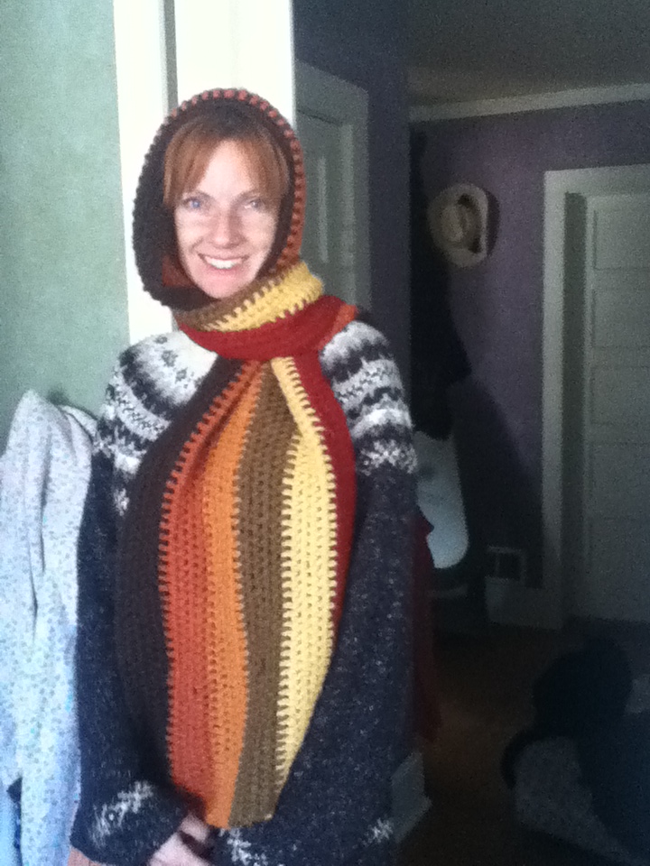 Back to crocheting, the first picture is of a head wrap/scarf that I made a few years back while sitting in the scorching sun of a farmer’s market. I get migraines if my ears get cold and alpaca fiber is the only thing that keeps my ears warm. So, I made this lovely shawl/scarf/head cover to keep me toasty. The colors are drool worthy and it was such a simple stitch. Simply chain until you have the length you want. Then double chain back and forth until you get the size you want. I switched colors after each skein. Luckily I got a discount from my friends Marianne and Wade at T 3 Weavers because we were doing a market with them at the time. http://www.t3weavers.com/yarnshop.html