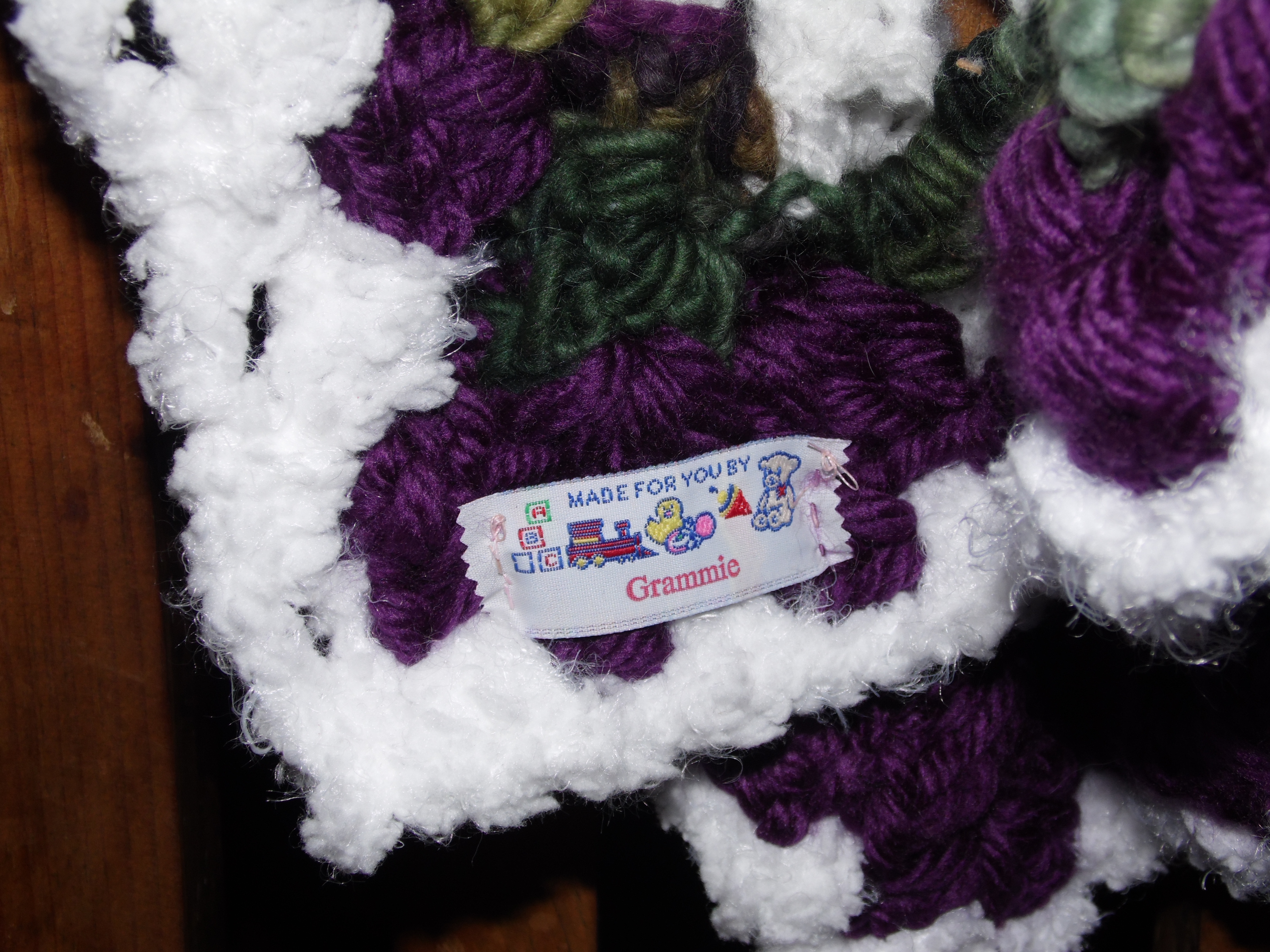 I had these fun labels made to put on all the things I shall make her. Made for you by Grammie. This baby comes from young families and there are nine,….calculate how spoiled this baby is going to be….nine grandmas! I had to think of a name that set me a part but wasn’t too far from the original. So, Grammie it is.