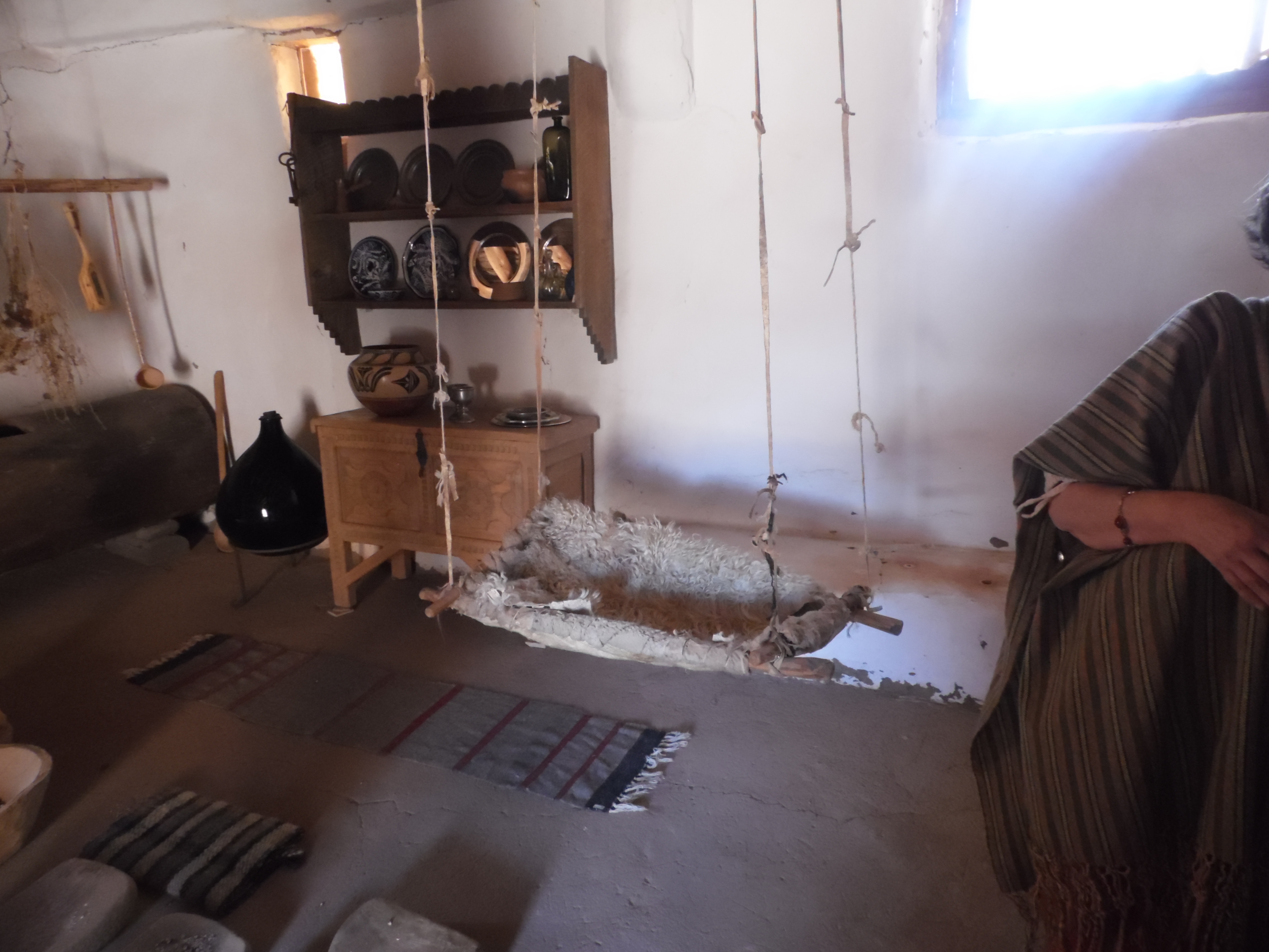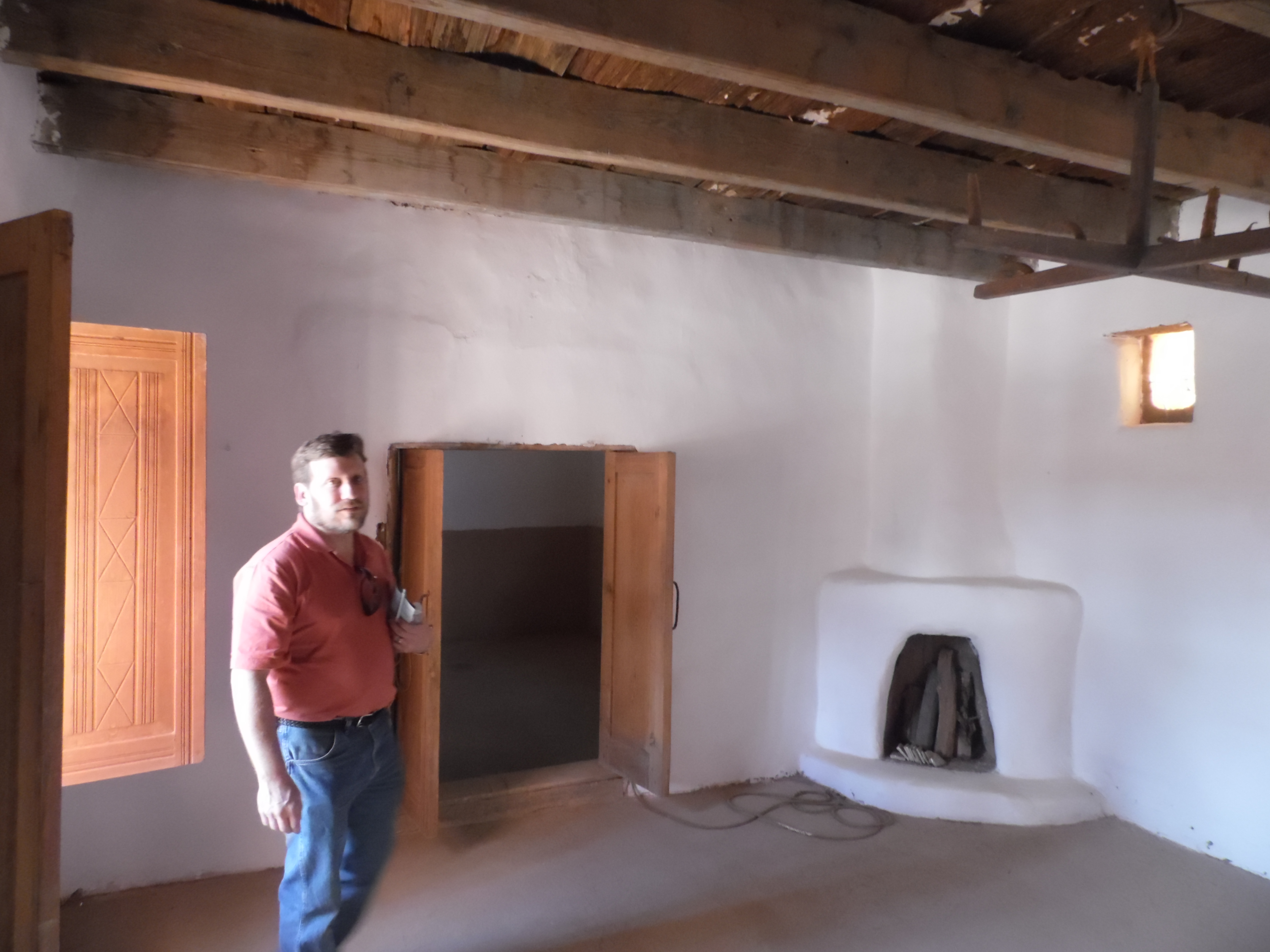 The original kitchen. The fireplace (kiva) is in the corner. It serves as a cookstove by placing hot embers beneath pots. The heat rises to the shepherd’s bed above. We would put grandpa there, a sick child, or a new lamb to keep warm above the fireplace.