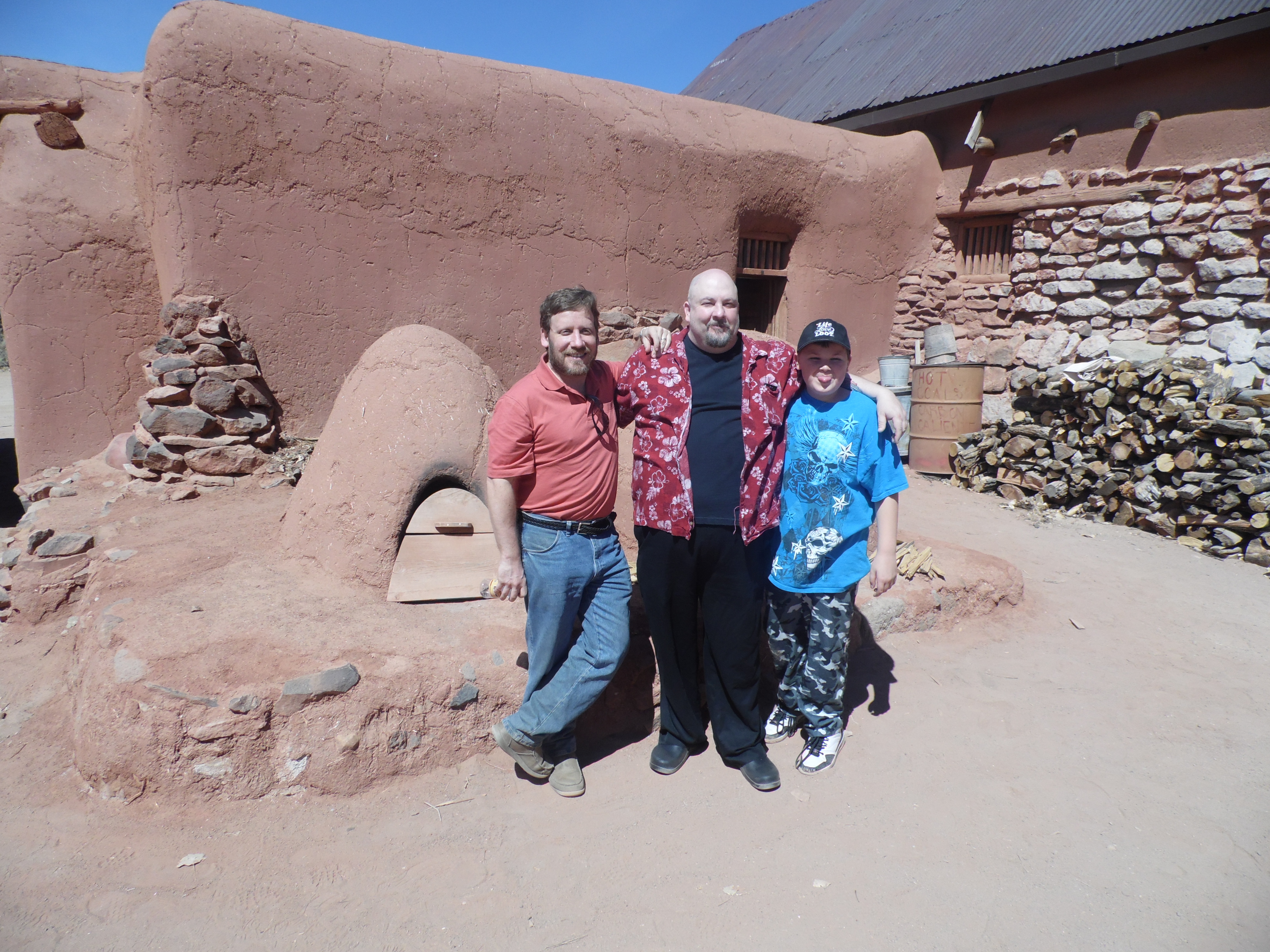 These good looking men are standing in front of the hornos, the outdoor ovens. Simply start a fire in them and close it up. When it is down to embers, sweep the embers out and put a small piece of wool in there. If it burns, it is too hot. When the wool becomes a light cinnamon color it is ready to place bread into. No heating up the kitchen! I wonder if Doug will build me one.