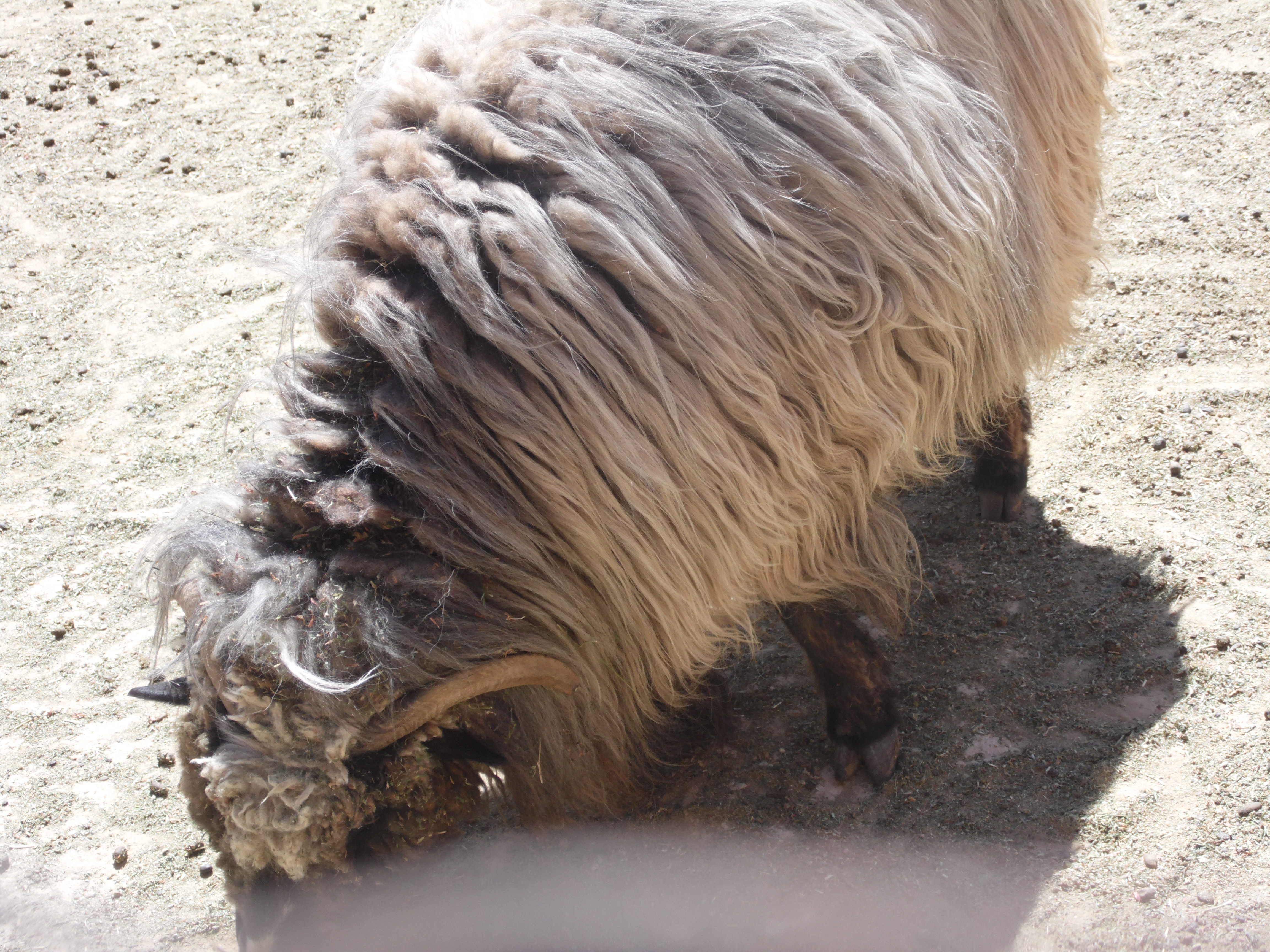 These are Churro sheep. They have great, thick wool that makes wonderful blankets, and I will take their word for it, good meat.