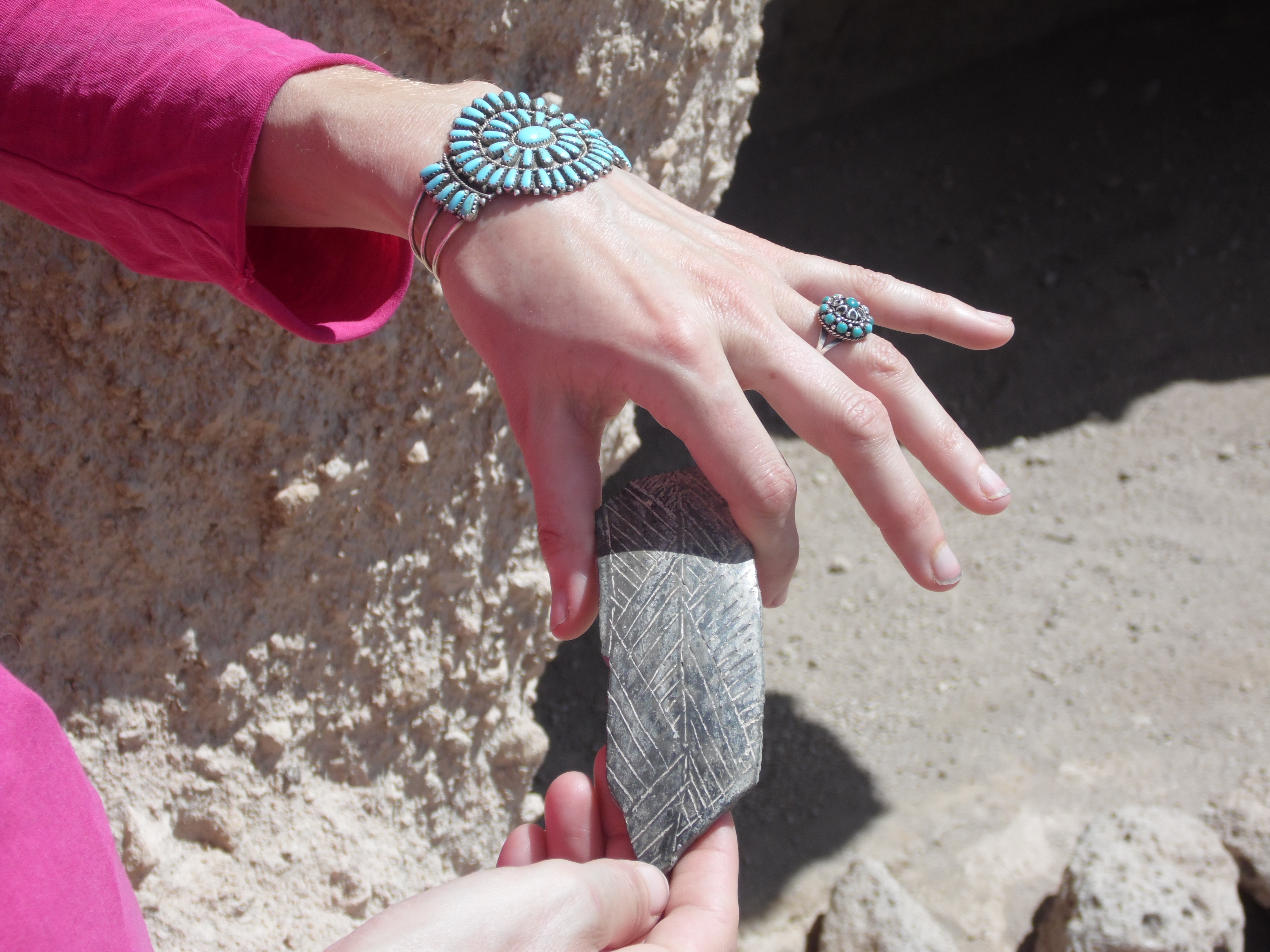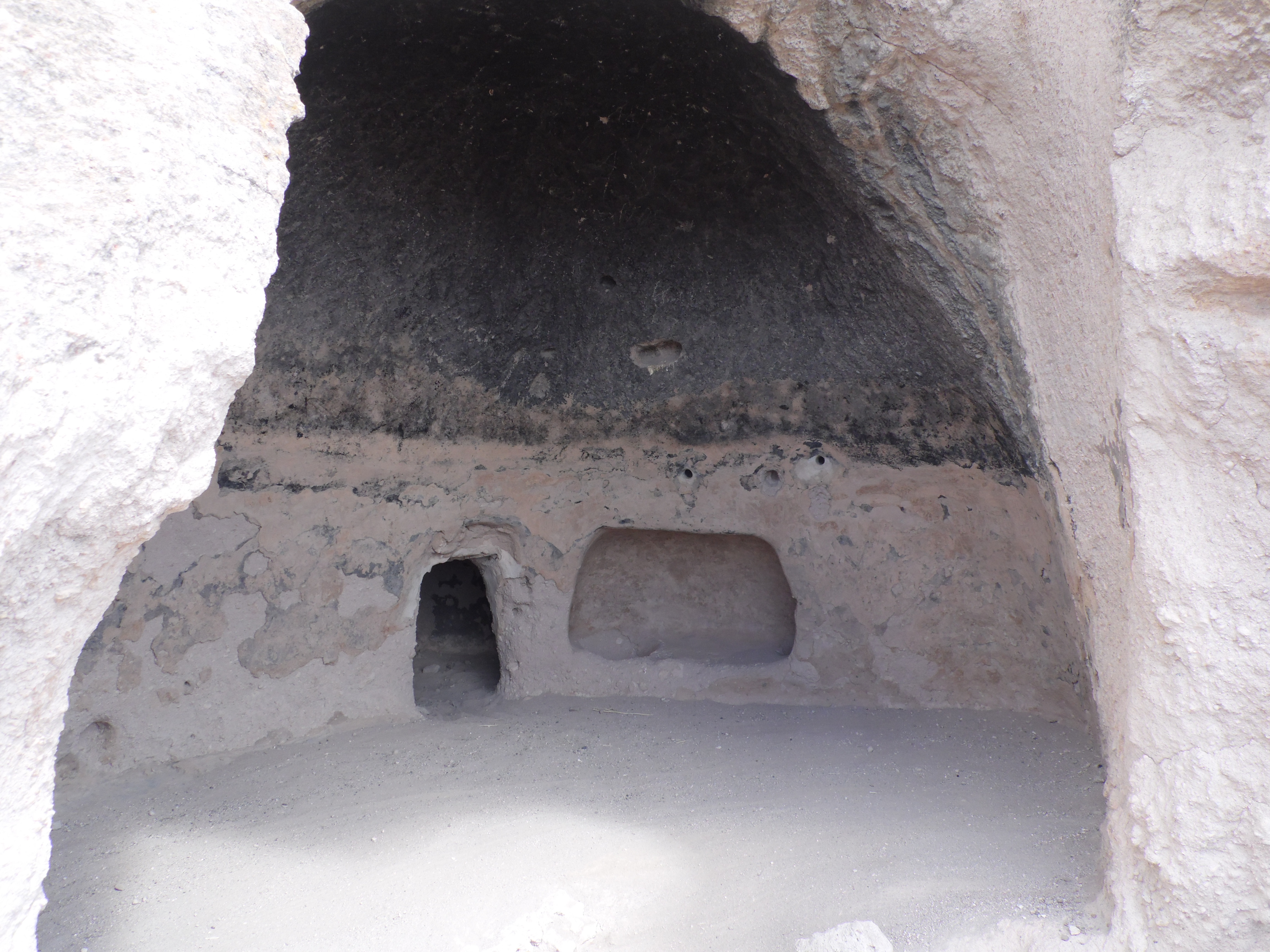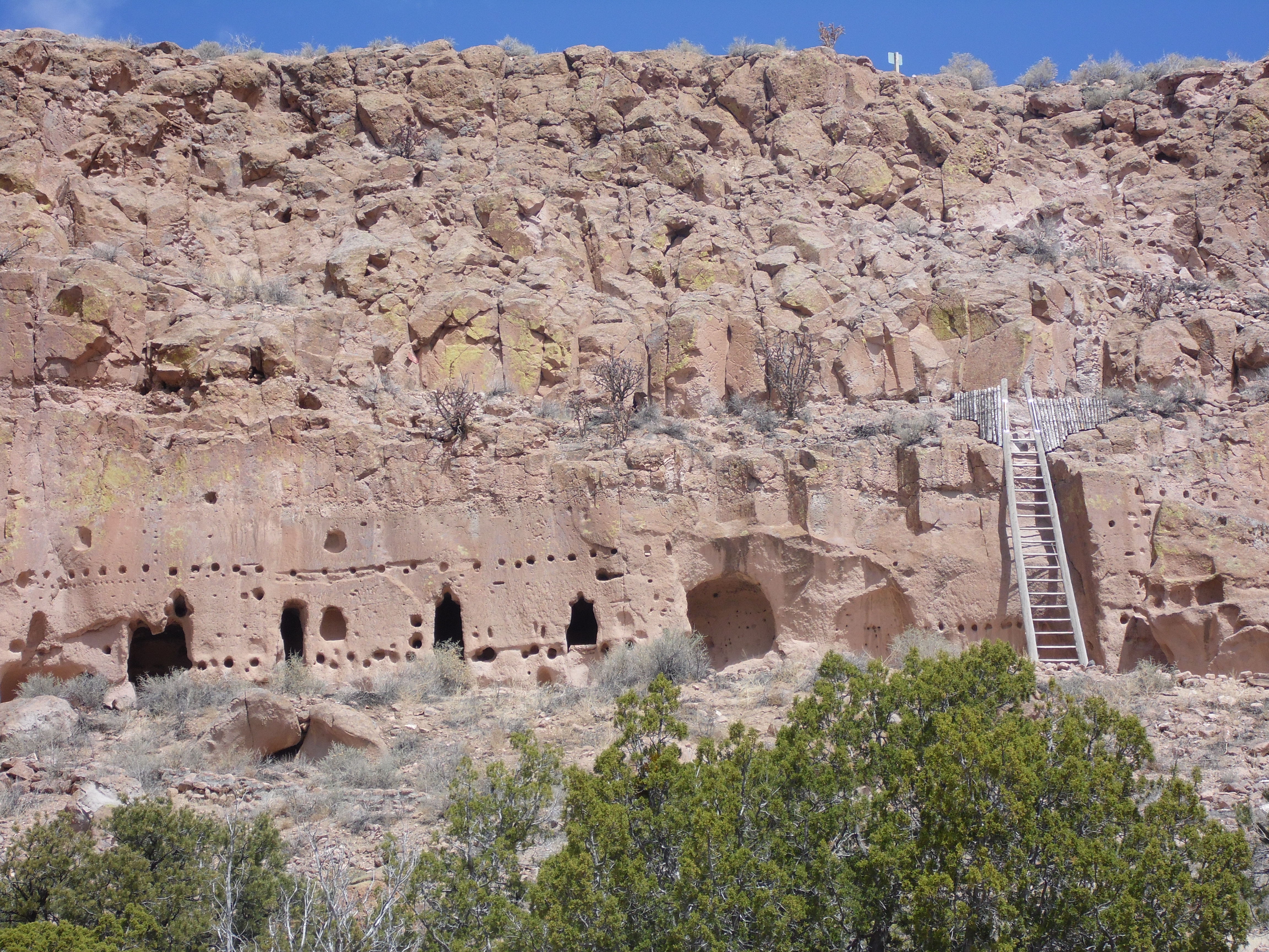 You thought the last place we went to was old! The Puye Cliff Dwellings show the life of some rugged homesteaders! 900 AD-1600AD the ancestors of the Santa Claran people lived up on a mountain top in the summer in small rooms of one large building made of volcanic rock with a courtyard for dances. They lived in the rock face in the winter. The homes are extraordinary. The people were farmers. The altitude is the same as where I live. There is no more complaining from me on the altitude or short growing season! If they could do it, I can too. They saved water in a pool. Grew the Three Sisters that I have talked about, corn, squash, and beans. They were raided by other tribes because they had vegetables! Look at this amazing kitchen carved out of stone. A thousand year old kitchen! I cannot wrap my head around that. But, I suppose my kitchen at home is not too small after all. My stove is little easier to use than the one shown!