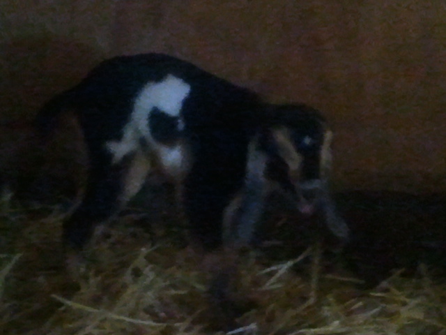 One of the most delightful things about spring are the babies!  So sweet and innocent, so new to this world.  The mama in me wants more babies.  Not the human kind; I am happy being a grandma!  But the furry kind.  These are pictures of Nancy’s two new additions to her farm.  The most darling little goats, the size of a poodle.  Besides having new playful kids brightening up her farm, she will also now be in butter, milk, and cheese once again.  This appeals to me.