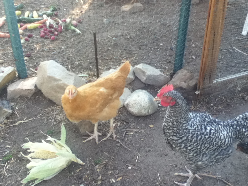 Meanwhile, in the chicken coop, Laverne sits on eggs that don’t belong to her (until I take them away) and glares at Brigitta and Aretha.  Henry up until recently was banned to the chicken coop as well by the other chickens.  Not just the coop, but the dog kennel within.  He runs around the yard poofed up like a good looking peacock, only more like a teenaged chicken, bossing the girls who just look at him like, ppleeassse!  They will not mind him a bit.
