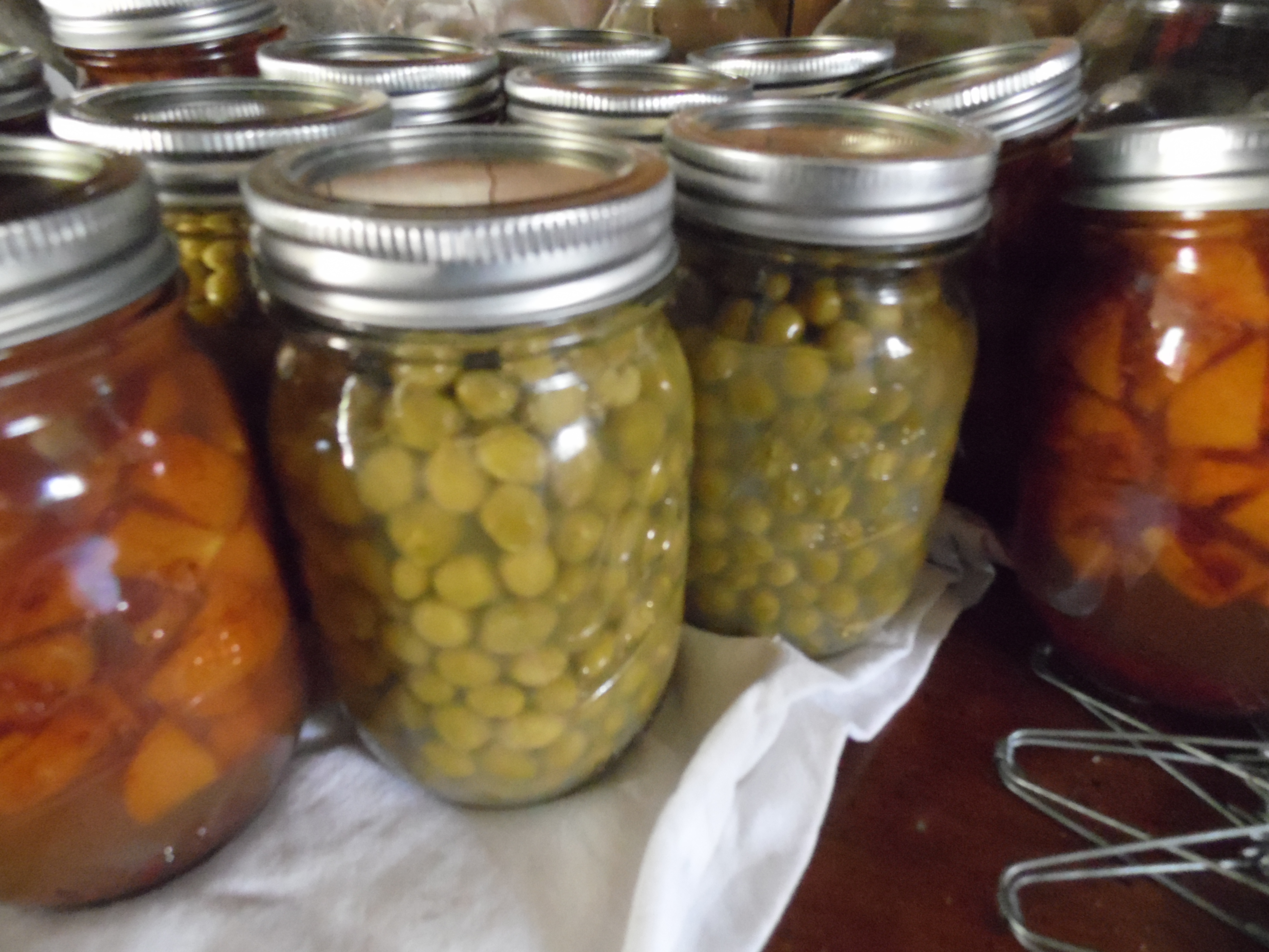 My friend, Jen, came over to help can them. We tried in vain to get her young daughter to shell the rest of the other box, but she said sweetly, “No, thanks!” I got to the rest of that box that evening but half of it had gone unappetizingly gooey. In all, nineteen pints of delicious (better eat every last one) peas were put up.