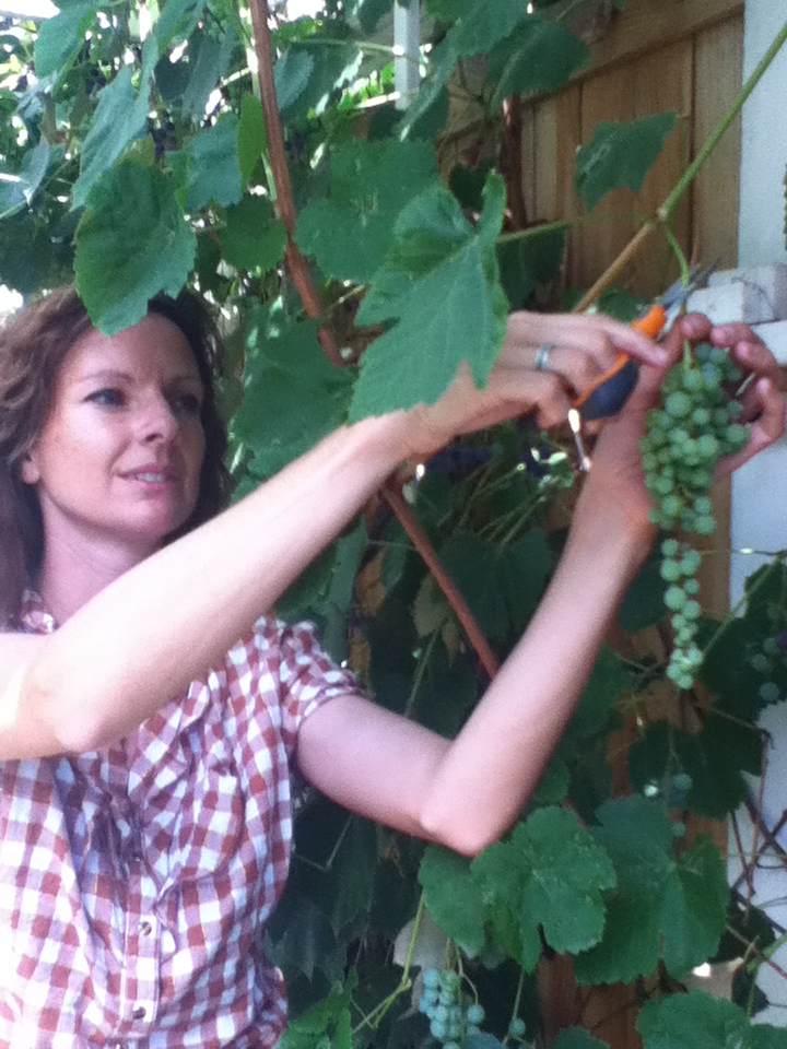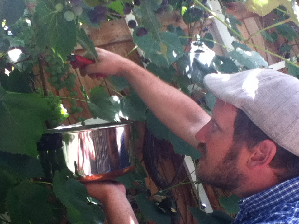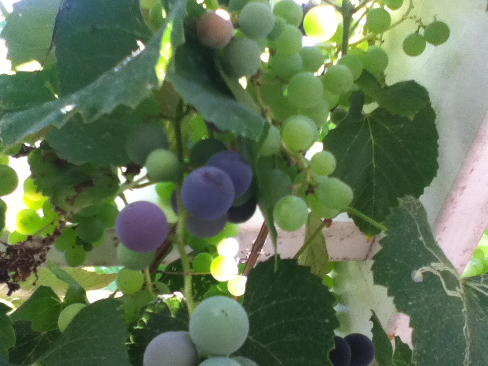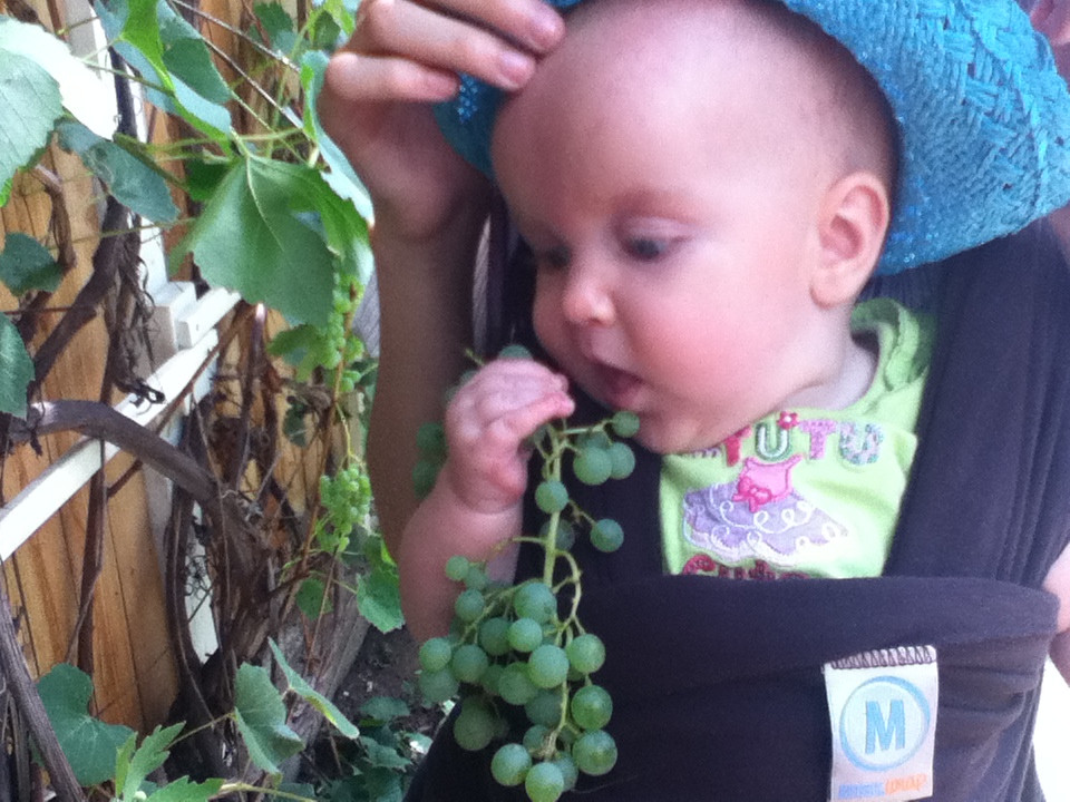 My Great Aunt Donna (mind you, that makes here great, great, great aunt to Maryjane…what a blessing.) has a large corner plot of land and a fifties style brick home on a busy street in Denver.  For years she has cultivated a garden worthy of magazines.  She is a Master gardener and a generous heart.  When she called and said the grapes were ready, we didn’t dilly dally!  The raccoons and the neighbors were eyeing the prize.