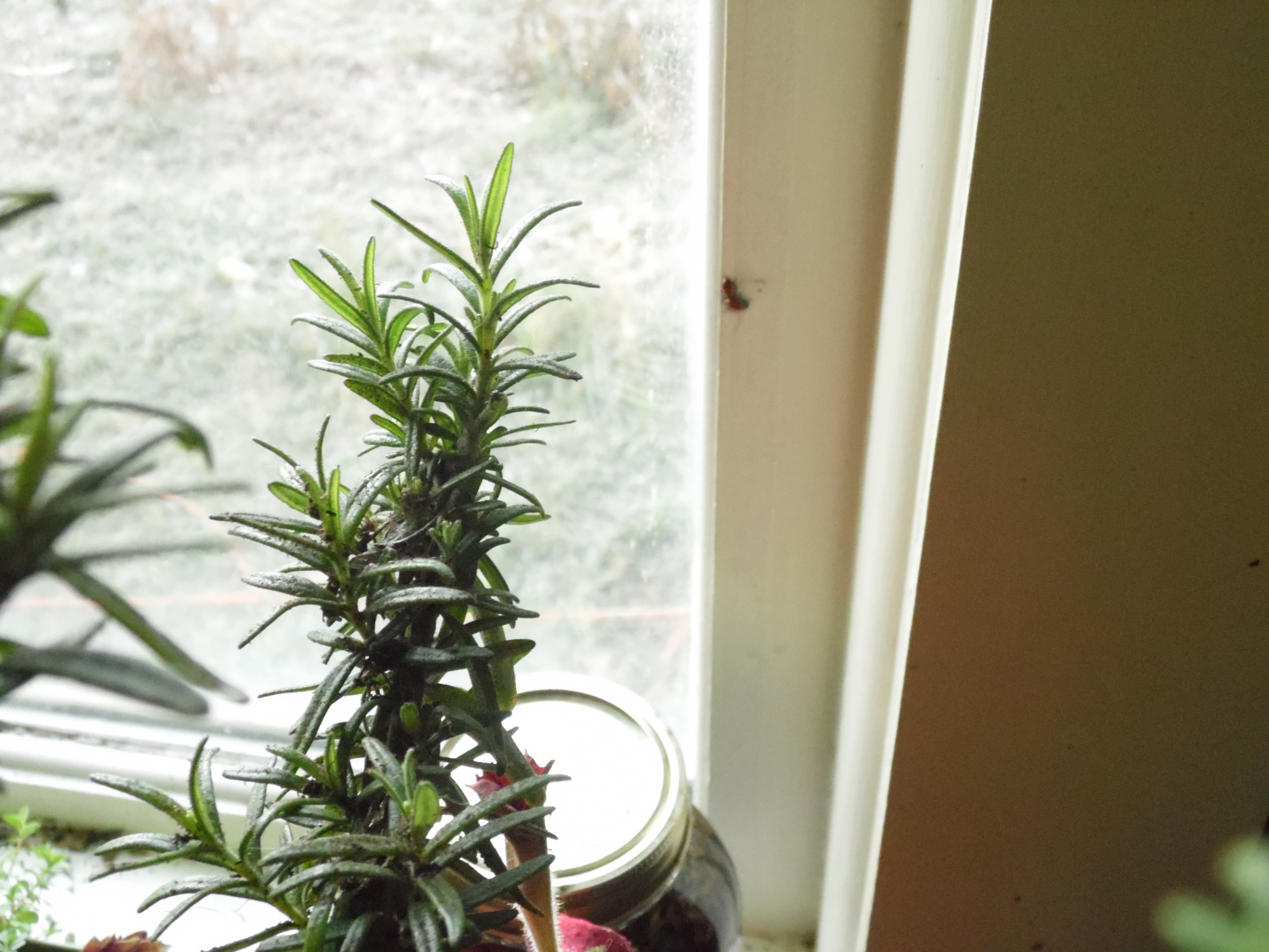 Shelby had been raising them as an experiment for girl scouts. So, when it was time to let them go, she thought of me. I laid them gently in the pots that line the window. The indoor farm now has lady bugs.