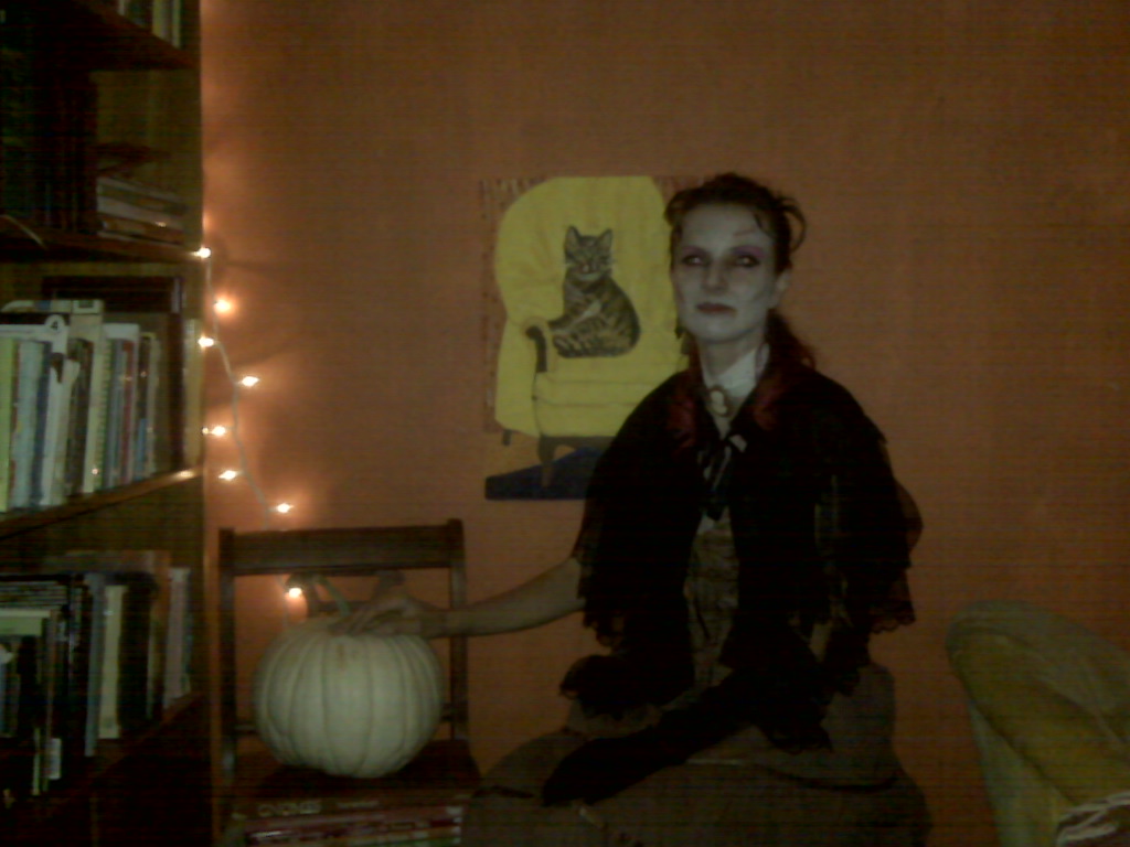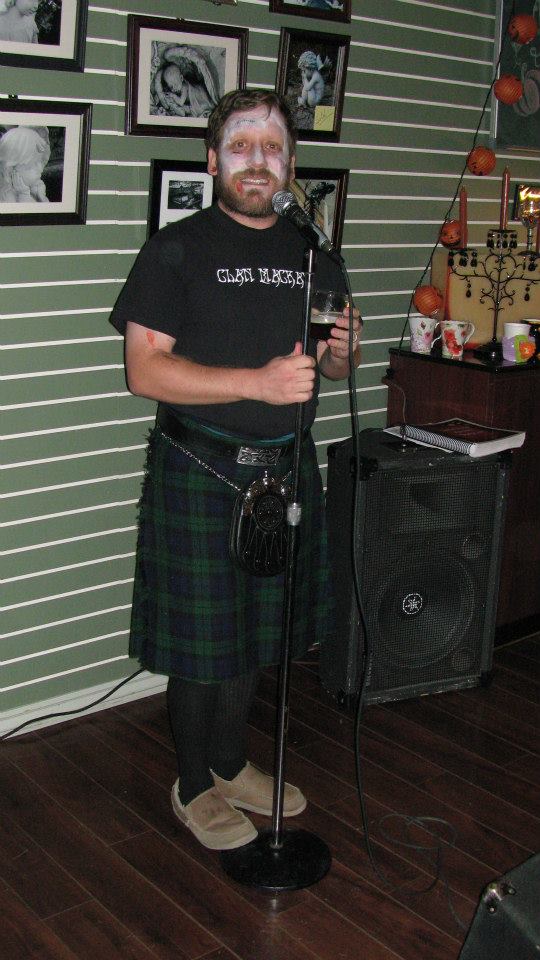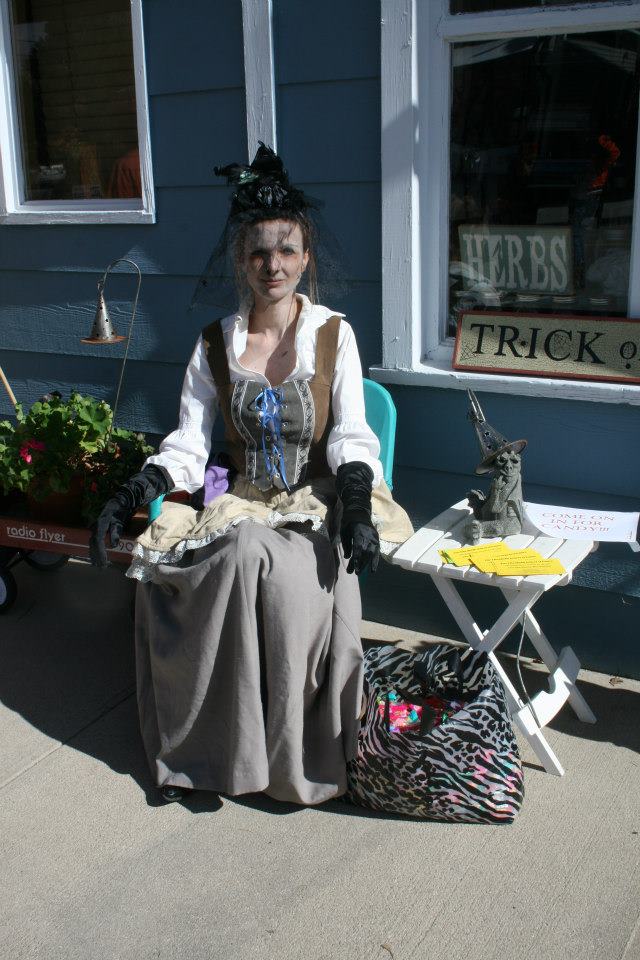 Doug wore his kilt last year and with the help of Emily’s makeup magic (white paint included) became a dead Celtic gentleman. I was a dead Celtic woman (who may have been a witch, but there really was no proof) thanks to my own dead looking makeup, long skirts and corset, plus a head band that looked like a witch hat.