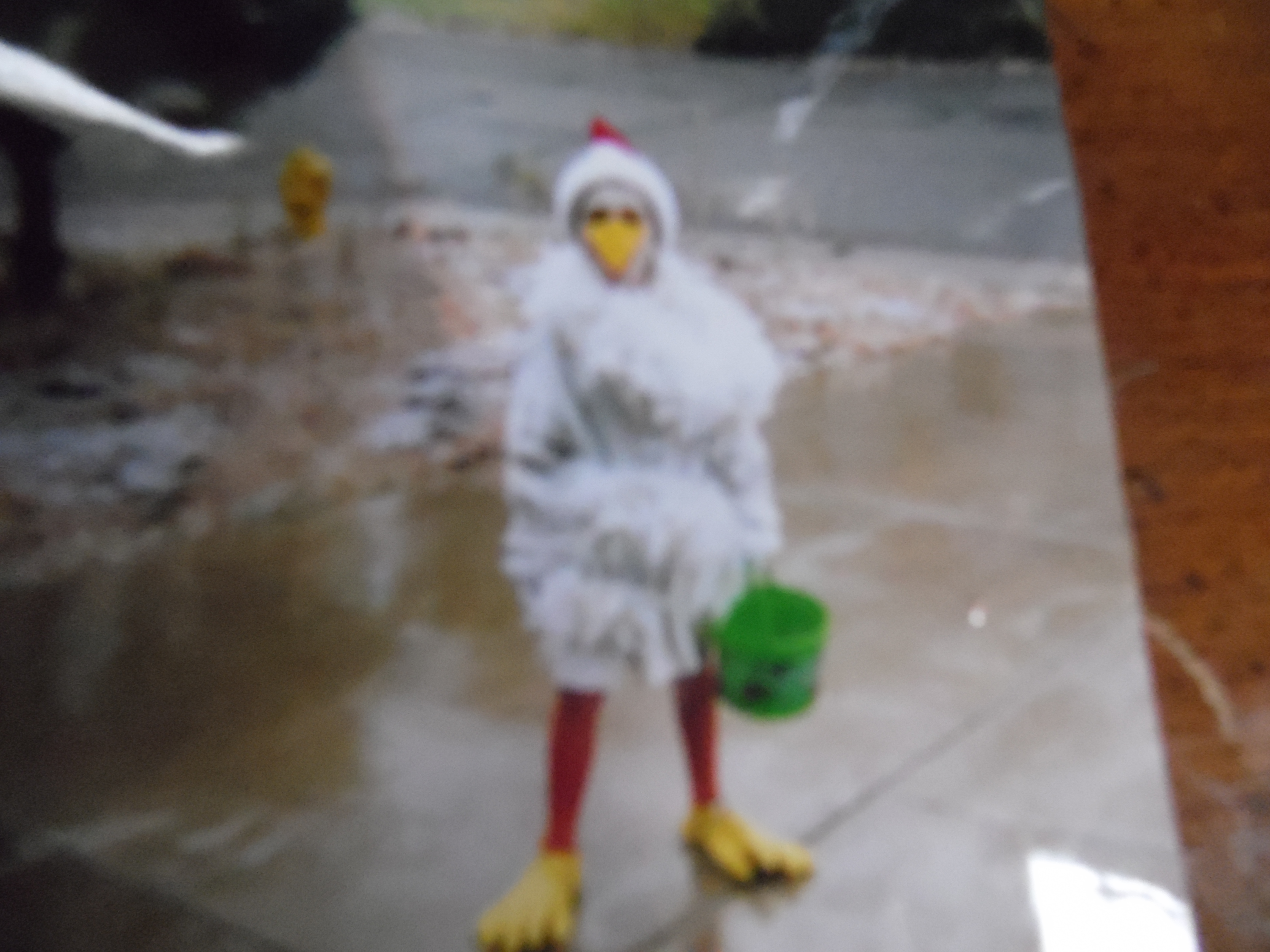 I love that chicken costume. Using the gloves for chicken feet was brilliant! 🙂