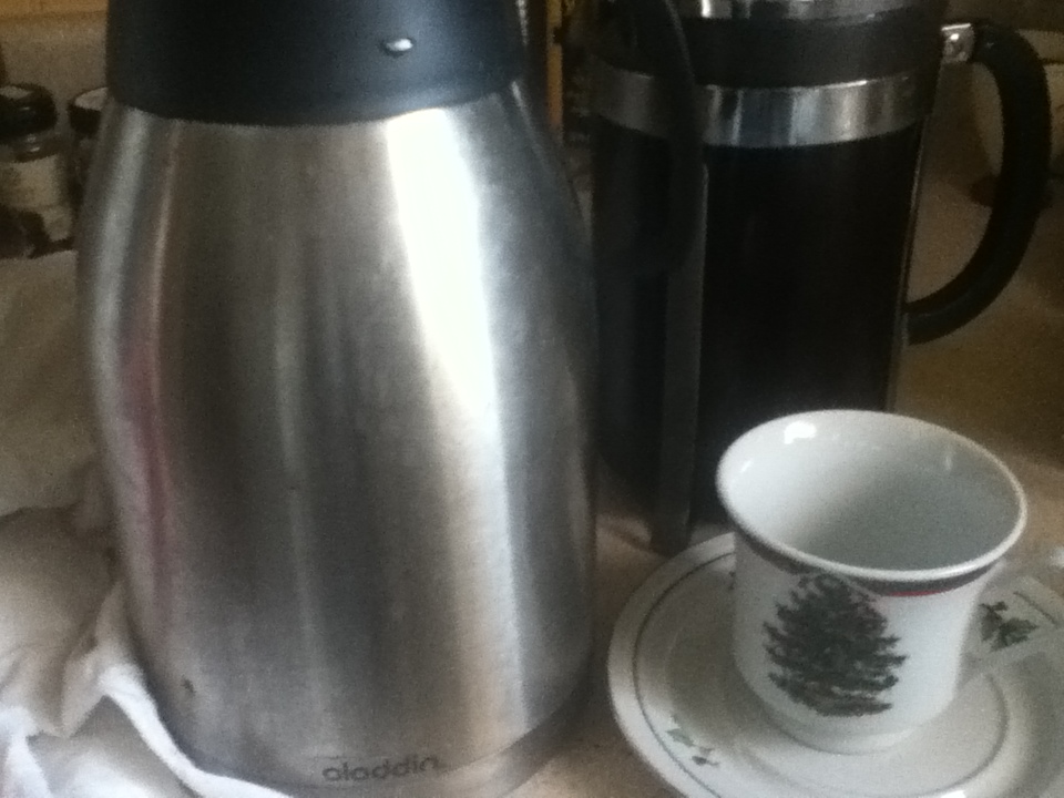 Then I saw this in the back of my cupboard. A simple carafe. I pour the coffee into the carafe and it stays hot for hours. So simple. So off-grid friendly! And so accessible.