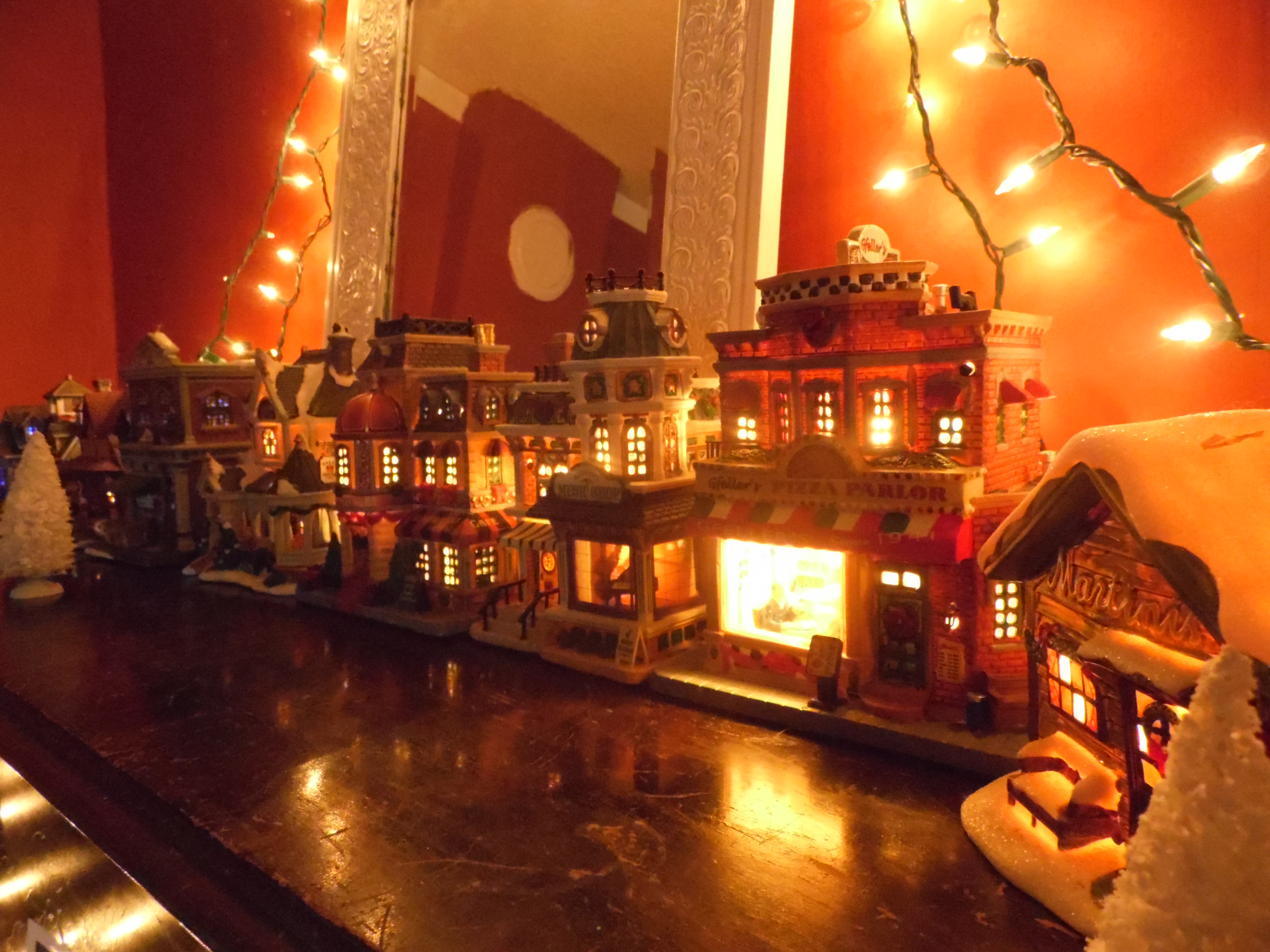 A holiday collection is fun to behold and bring out around the holidays.  A grouping of old Santas, or sleighs, or even photographs are fun to look at.  I always wanted to collect these Christmas houses, but they are a bit pricey.  Once Doug and I figured out that if we had collected even one a year, we would have had a nice display by now, so we began purchasing one a year.  Our piano is now full and overflowing onto other pieces, so we didn’t get one this year.  Our tiny village is complete for now.