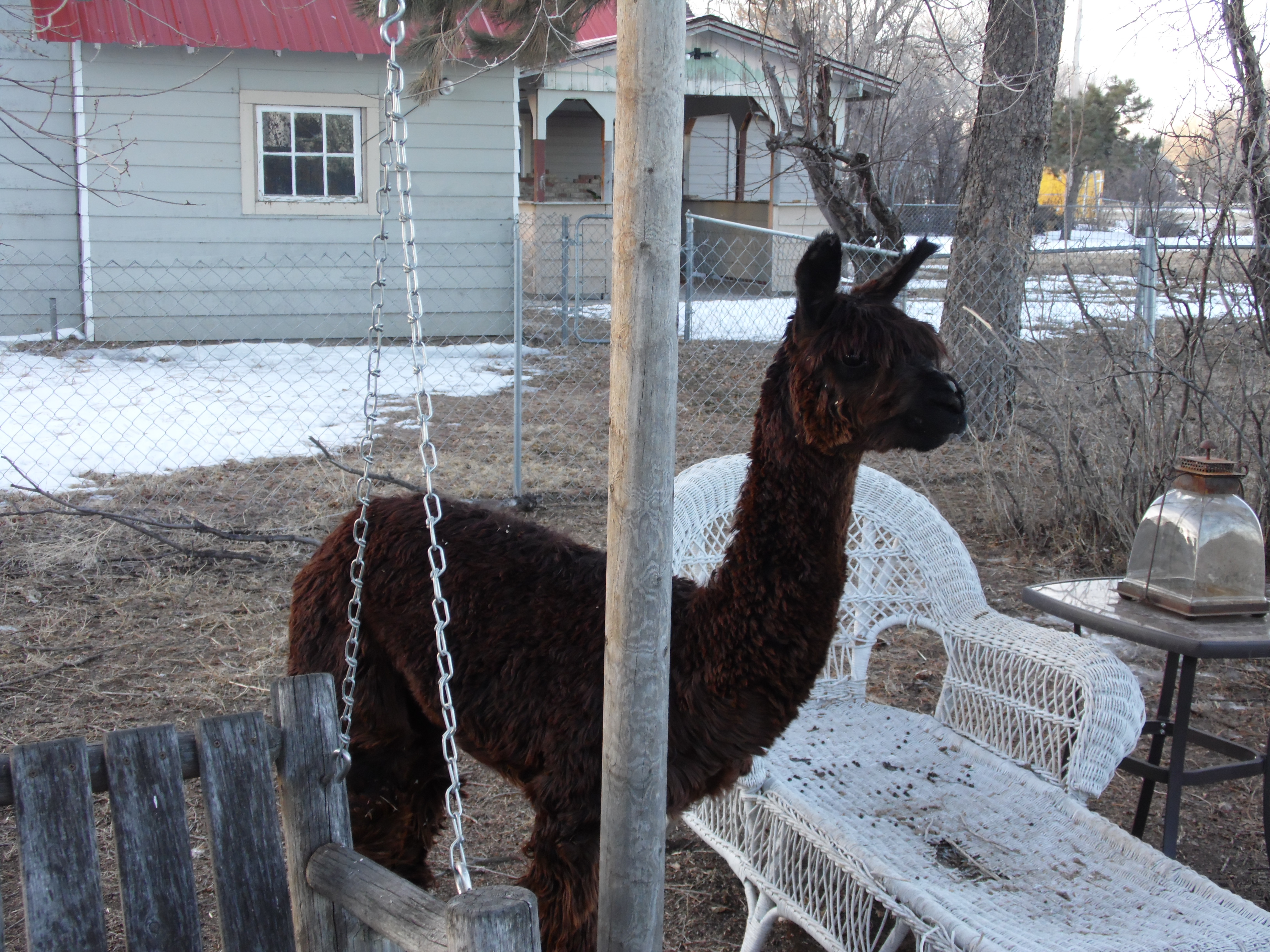 I, myself, walk past the back door, catch a glimpse of them in the back yard in my peripheral and have to look again.  “Dad,” I announce, “We have alpacas in the back yard!”