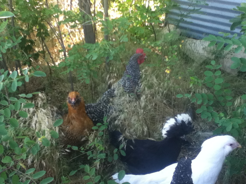 Rumor #2 They are aggressive and will attack you, talons flying, Bruce Lee style. Roosters are the protector of the flock. The bodyguard. Sometimes they get mixed up and think you want to eat Henrietta. My rooster is quite docile. I can’t go up to him and snuggle him but he has not turned on us at all. He knows we are giving him food. If a rooster does becomes vicious, then he becomes sustenance. But, should he behave himself (which is often the case) he will warn the flock about predators, shoo the girls under bushes to protect them from hawks. He will throw himself in the way of a coyote so that the girls have time to escape. This is a chivalrous dude and a there is a real place for him in a back yard flock.