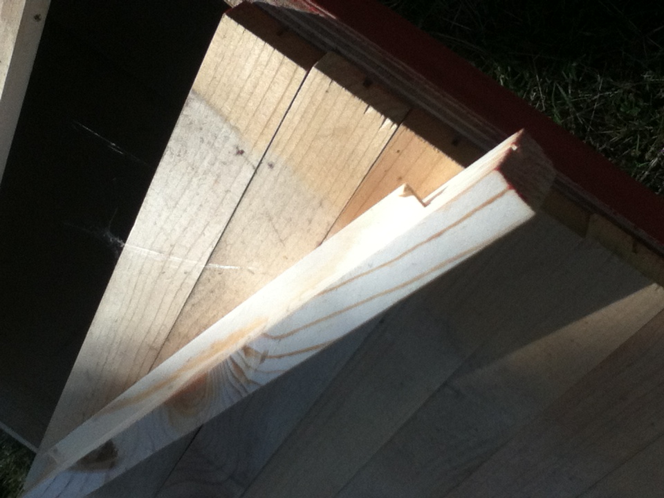 The books and the class are rather down on top bar hives.  Why?  No one has given me a straight answer but I am forced to take all the information I have stored and transfer it to a top bar hive.  Shouldn’t be too different.  These wooden blocks on the top have an edge that we rub beeswax on so that the bees will know to start their combs across the edges.  After ten wooden blocks are filled, the ones after have honey on them for us!