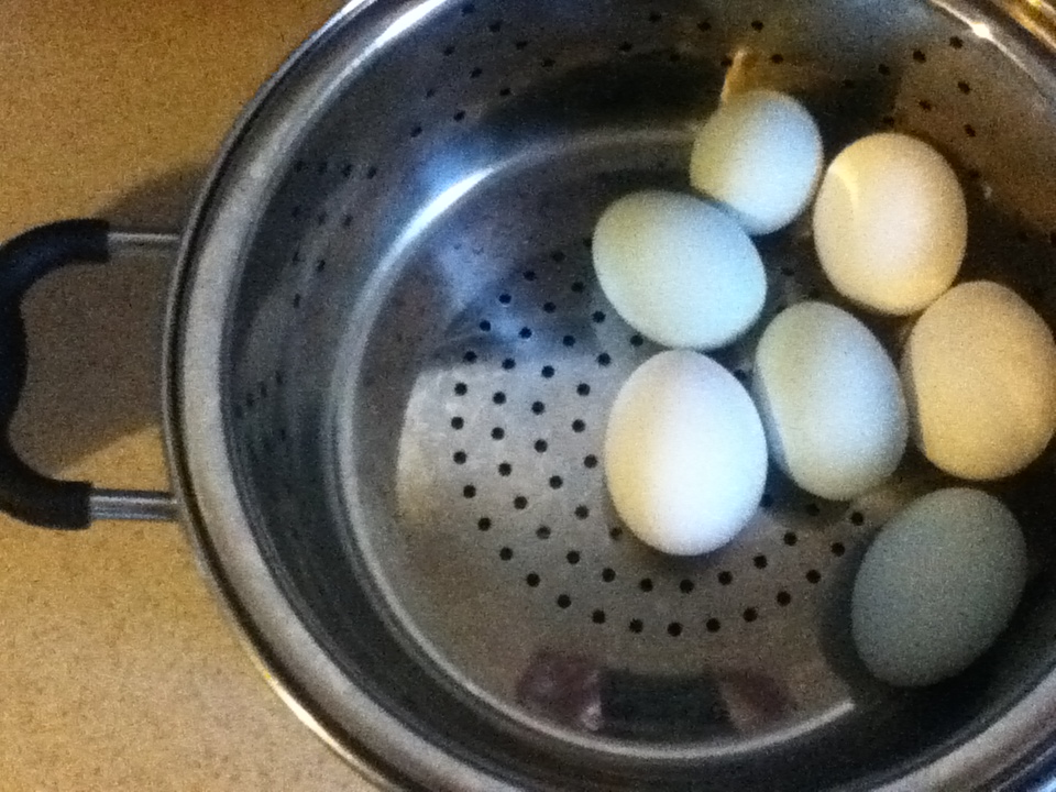 I read in Countryside magazine where a reader had written in that she steams her eggs.  I remember steaming my eggs when we lived in our first house in Parker.  The old steamer that my grandma had bought me for graduation stood on the counter with it’s timer letting us know when our eggs were done.  They were perfect every time.  When we moved to Elizabeth and then Kiowa, the altitude threw it for enough of a loop that I had to adjust the settings.  But no matter what I did, the eggs never turned out quite right.  The steamer found a new home at the Goodwill.