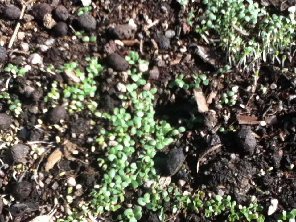 Lettuce starts peeking through the soil. Hopefully they will be ready for market!