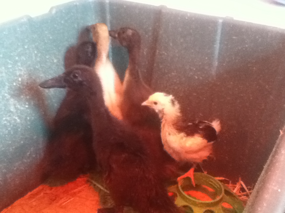 At any given time, one can peek in and see five ducks. I mean four ducks and one wannabe. Macchiato is pretty constantly damp as she likes to run through the water with the ducks and hides behind them if I try to remove her. These are her buddies, and gosh darn it, she is a duck!