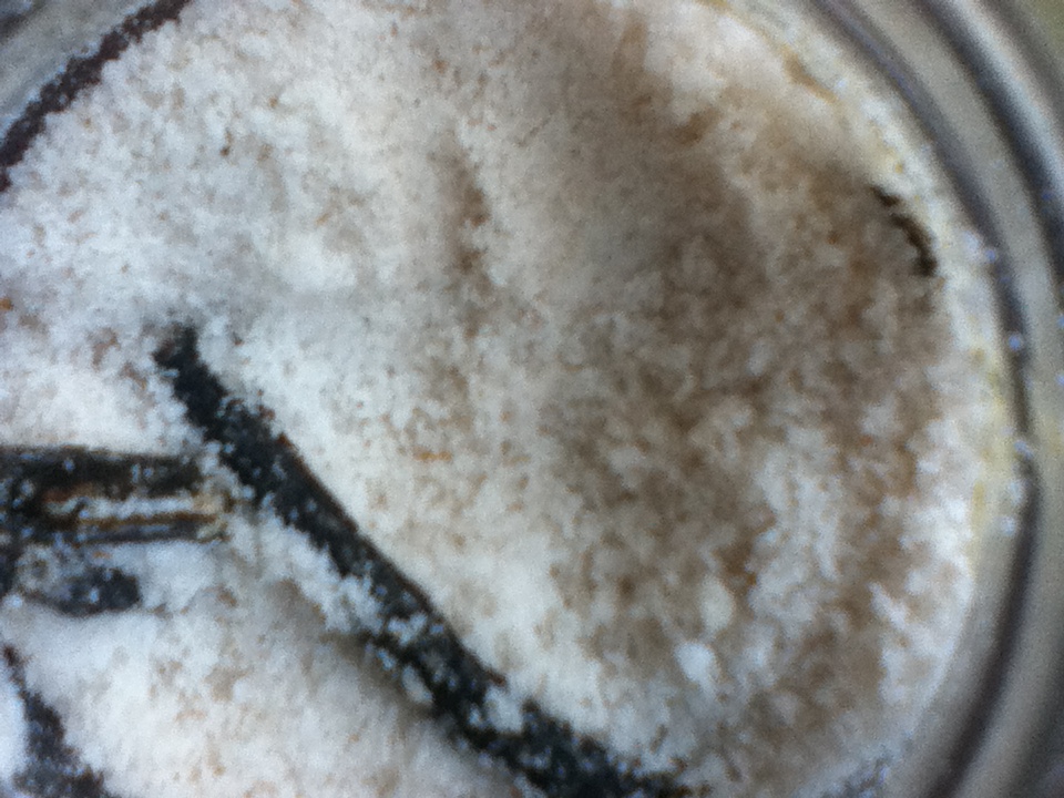 My friend Rodney and I hit the oil stores whenever we pass them. There are not a lot so it is a treat to find one. One day when we were in the Springs purchasing our oils for the next few months we came across the flavored salts. I picked up a small container of black flecked sea salt, fragrant with vanilla beans and took it home. It was on my grocery list to purchase more when I had an aha moment. I had just emptied a quart of vanilla extract to sell at the market. (Read post here to see how to make your own vanilla extract. You will never buy from the store again!) There sat the beautiful vanilla beans. In the past I would have cut them open and used them in baking then discarded them. I cannot grow them and they are not cheap so I had to do something with them. Eye to the list, eye to the vanilla bean, big bag of sea salt in the cupboard. I simply placed the whole vanilla beans, sliced in half into the salt that I had poured into a canning jar shaking occasionally. A few weeks later when removing the lid the smell of fresh, spicy vanilla came wafting up from the eight ounces of salt. It cost me very little and I have plenty to add to baking dishes and a myriad of other meals (such as oatmeal, or goat cheese, or caramel to make salted caramel, or in jams, or salad dressing, or….)