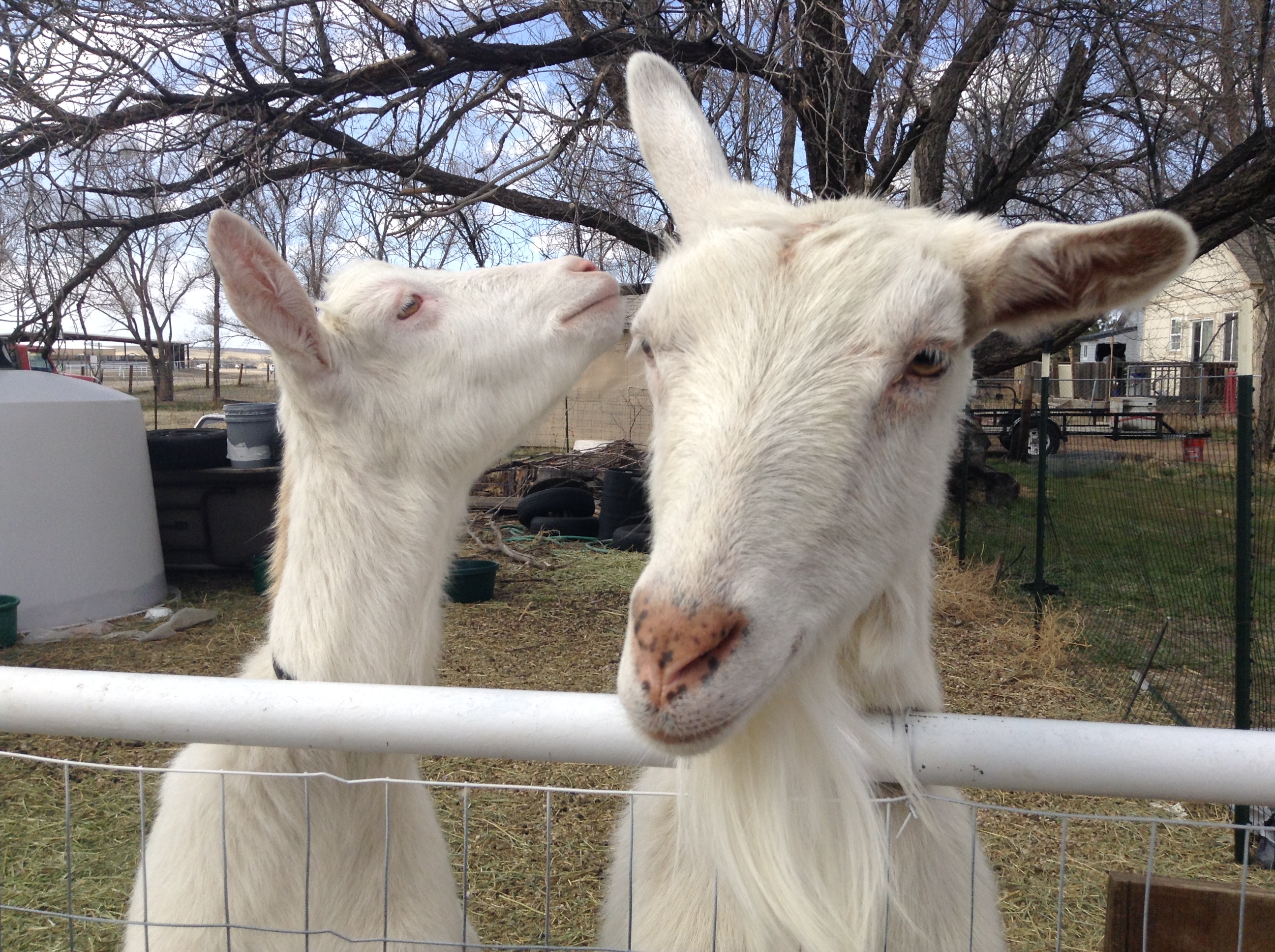 “How do you keep a goat in?” I asked Jill before this whole goat herding thing started. She replied that if a goat wants out, there is no stopping it. If they are happy, they will stay put. I have friends that use six foot fences, some electrified, watch for holes, and things that they can use as spring boards. We have a three and a half, some places four foot, fence of field fencing. The kids stay put. There was a new hole in one though the other day and Doug asked real casual like, “Why is Tank in your potatoes?” He didn’t wait around to see if anyone was coming to fix the fence, he just wanted those potatoes! Be vigilant but also know that they will and can outsmart you if they wish. Just give them more tires and a lot of hugs.