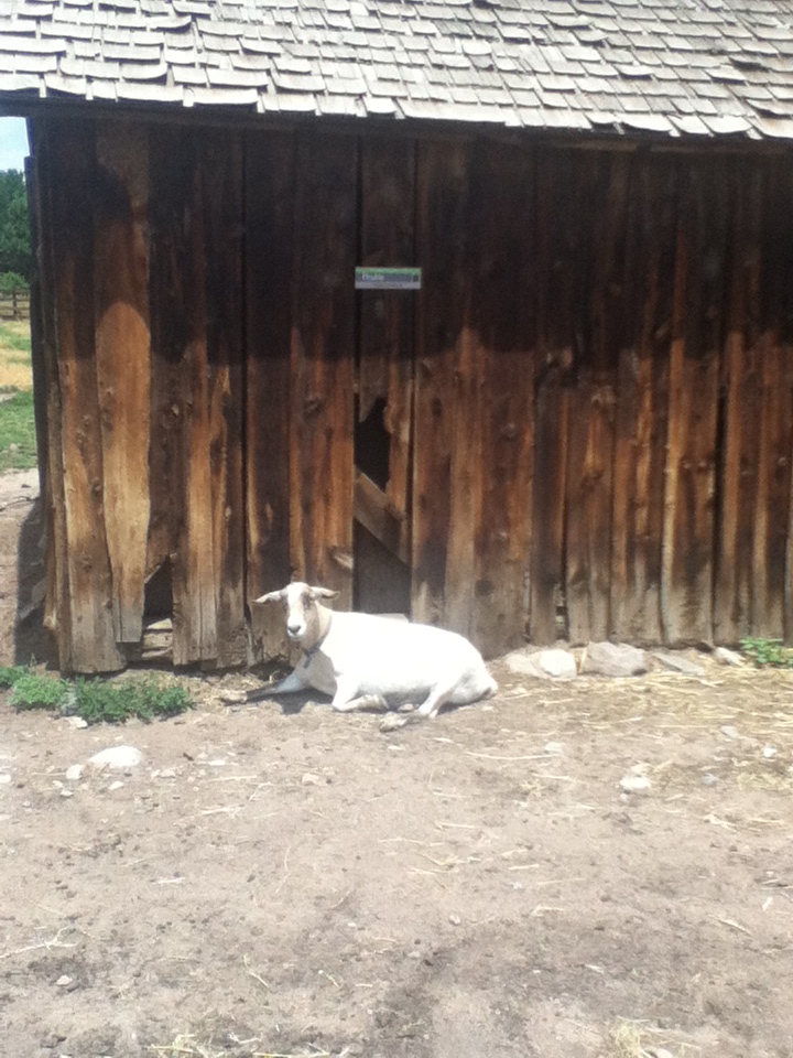 A barn is very important as animals are an important part of a homestead. Goats waiting to be milked bask in the sunshine.