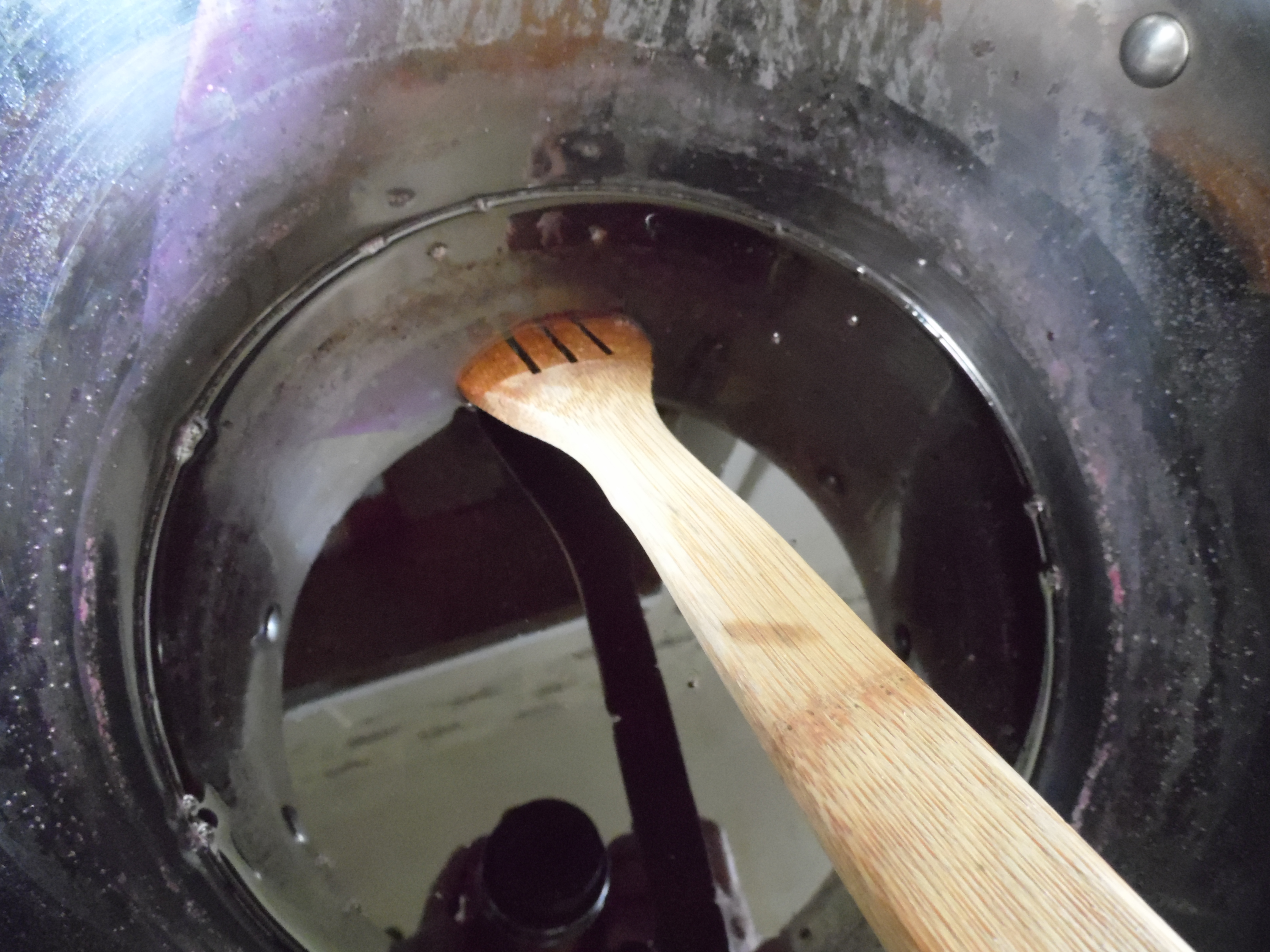 I don’t strain it until the liquid is below the fruit. The color becomes a deep purple.