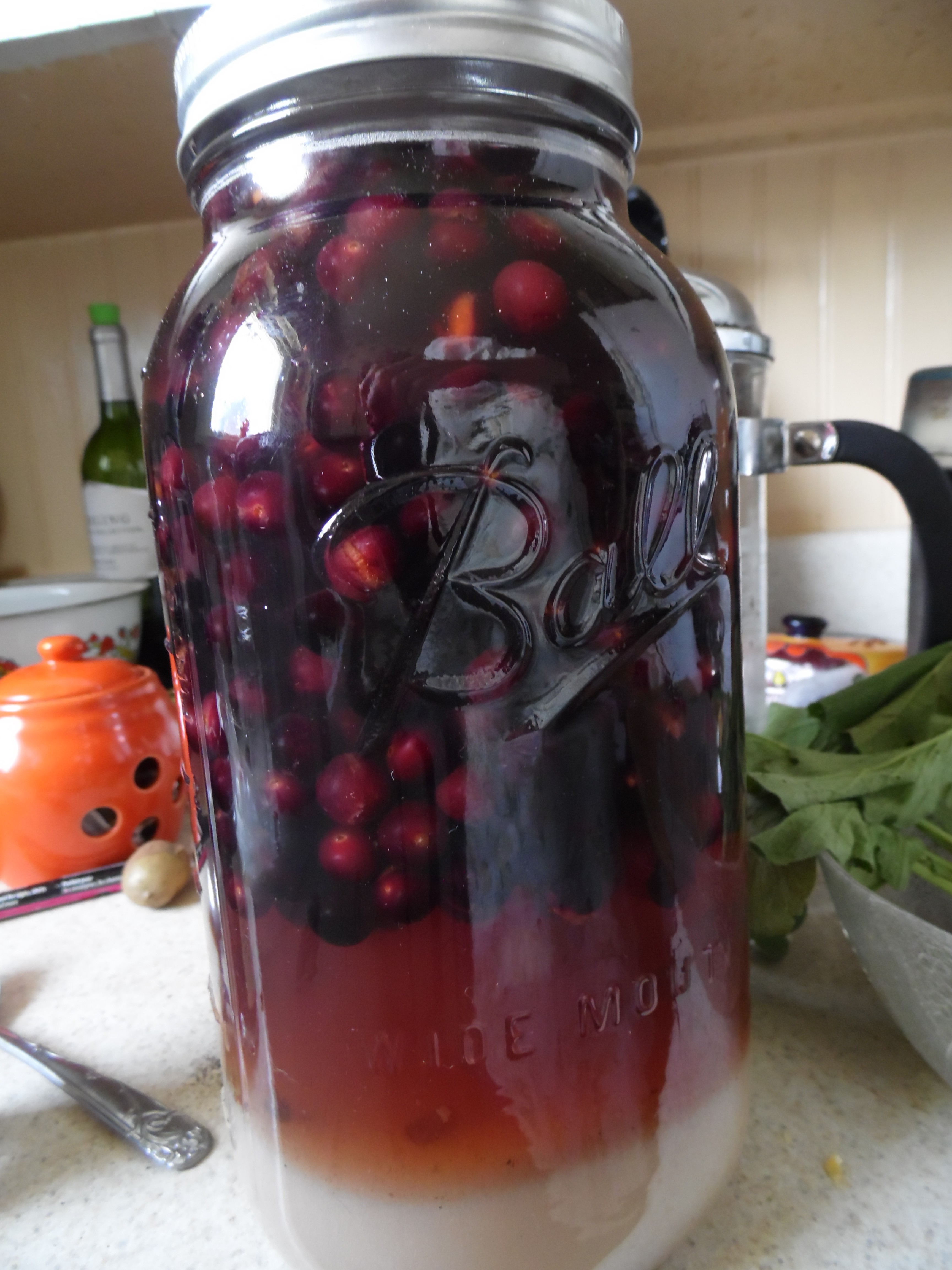 My friend, Sandy, adds more sugar half way through the waiting time and hers is quite spectacular. I may do the same this year. A nip of this concoction during the holidays or on a cold evening in front of the fire is very satisfying and very tasty. Incredibly smooth and easy to drink, do keep in mind it is straight gin! Make mixed drinks with it as well. The gorgeous, festive color lends itself to fine holiday gifts. Just pour into a decorative jar and arrange a ribbon about its neck.