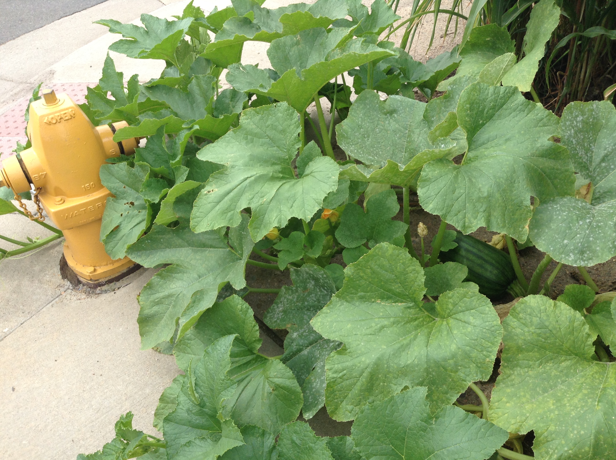 On our way back to the car shop we crisscrossed through the neighborhood and found unexpected minute pieces of farm.  A heavy laden plum in one scant front yard, herbs growing in the greenway by the street.  Yellow squash intermingled with large tufts of ornamental grass.  Pumpkins in corners and across sidewalks.  Wooden framed raised beds in the middle of a gravel parking lot near a warehouse.  Large leaves of chard and cabbage growing beautifully along with trellised green beans.  In front of a decrepit office building, quite near the tracks, surrounded by cement and street, in select sections tall stalks of corn waved proudly as if they were new forms of ornaments and at their base the beautiful pumpkins crowded out the unsightly ground and thrived, right there in the dusty, smelly city of cement.  Bits of farm making their way back to the urban field.  It was pleasing and exciting indeed to see the local gardening and food movement in unlikely places.  Seeds long to be planted.