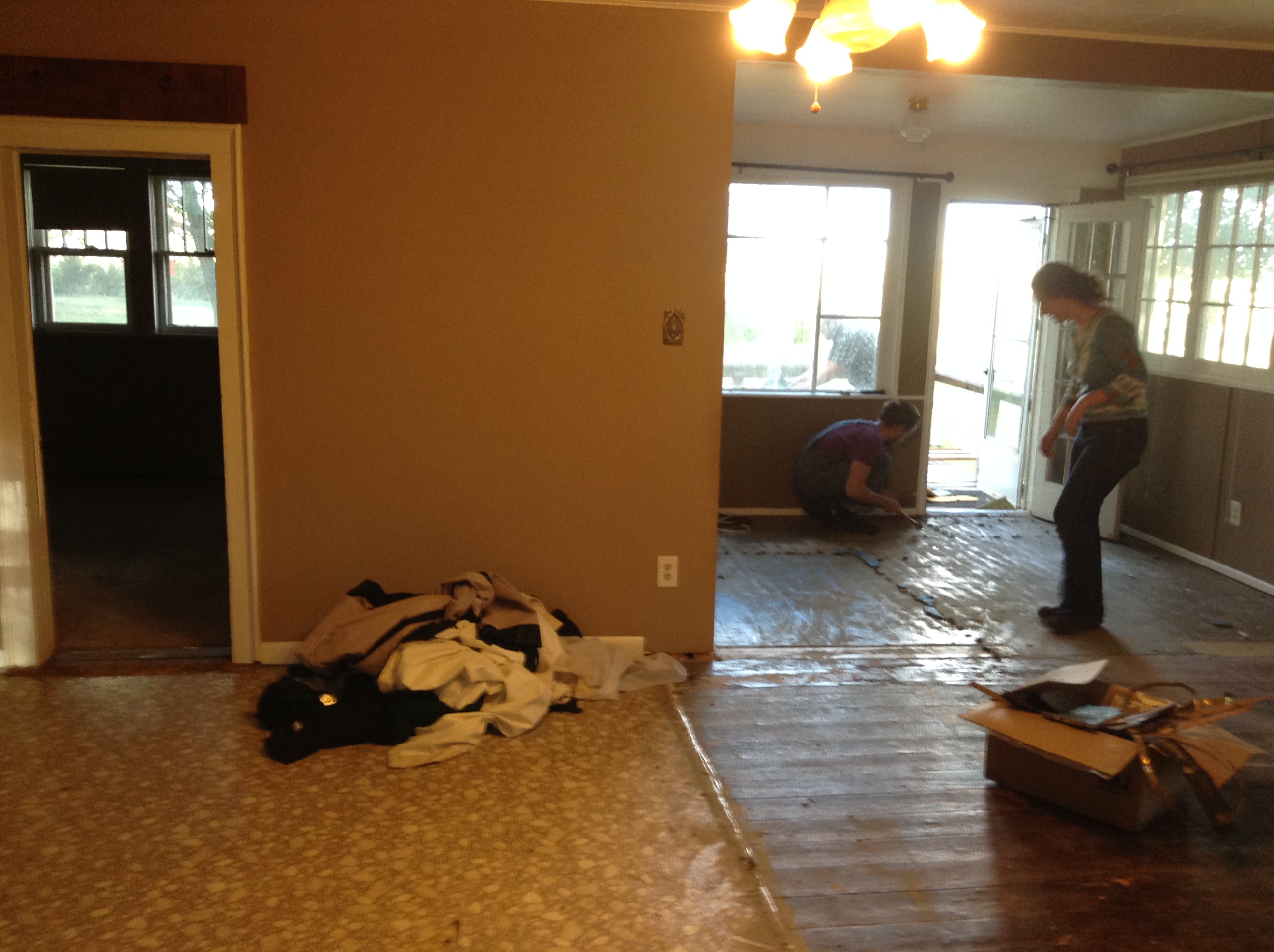 When we originally walked into this little house, I was trying not to get my hopes up because I knew it was a little further out than we (well, not we, he) wanted.  I saw the long pantry and the wood cook stove and squeaked in an attempt to shutter my squeal of joy.  The living room was dark.  Black curtains were hung or stapled on.  Old brown carpet with forty years of pet stains and wood paneled bedrooms finished the gloomy interior.  But I could see its potential.  Simple changes could make all the difference.
