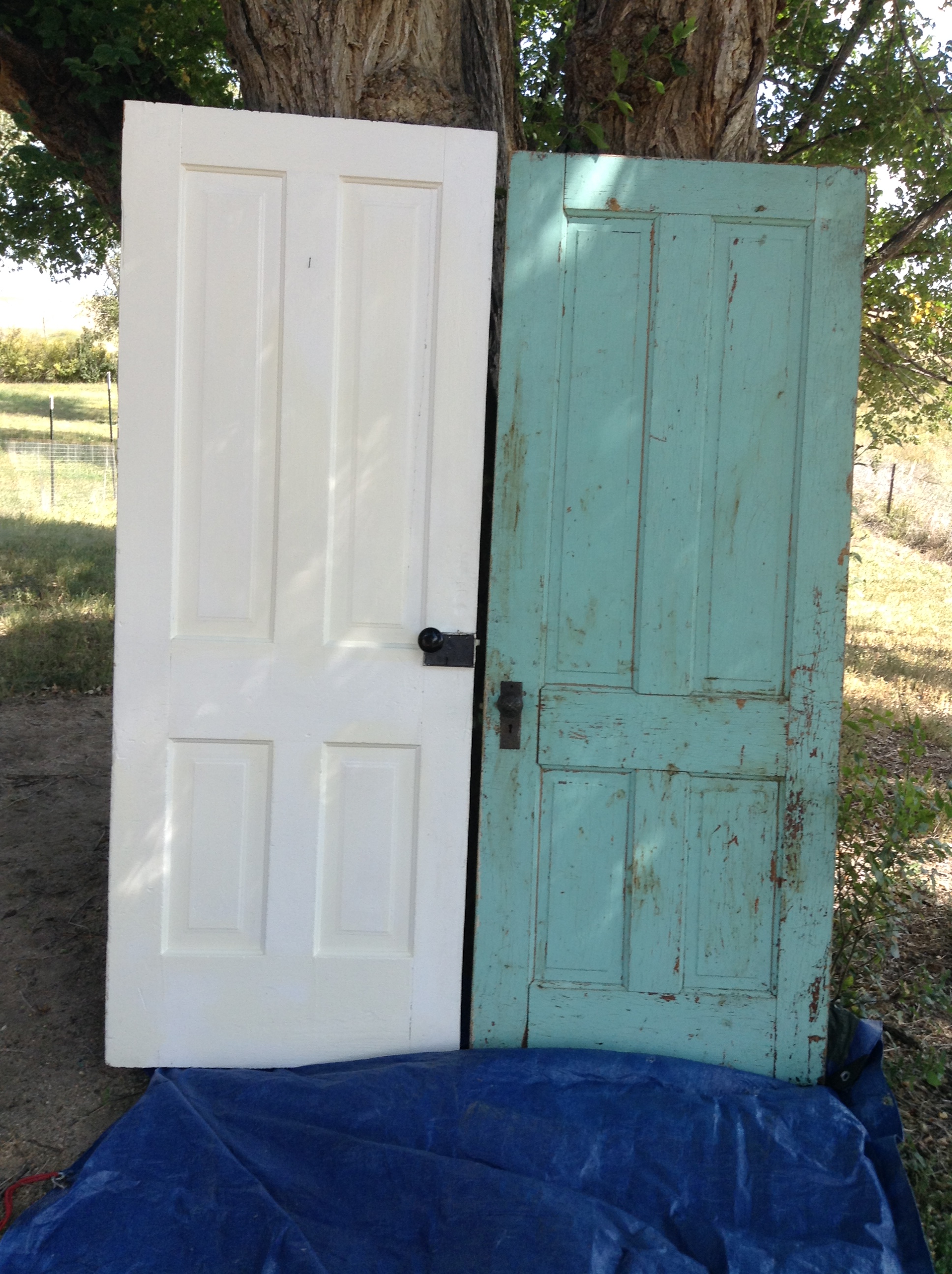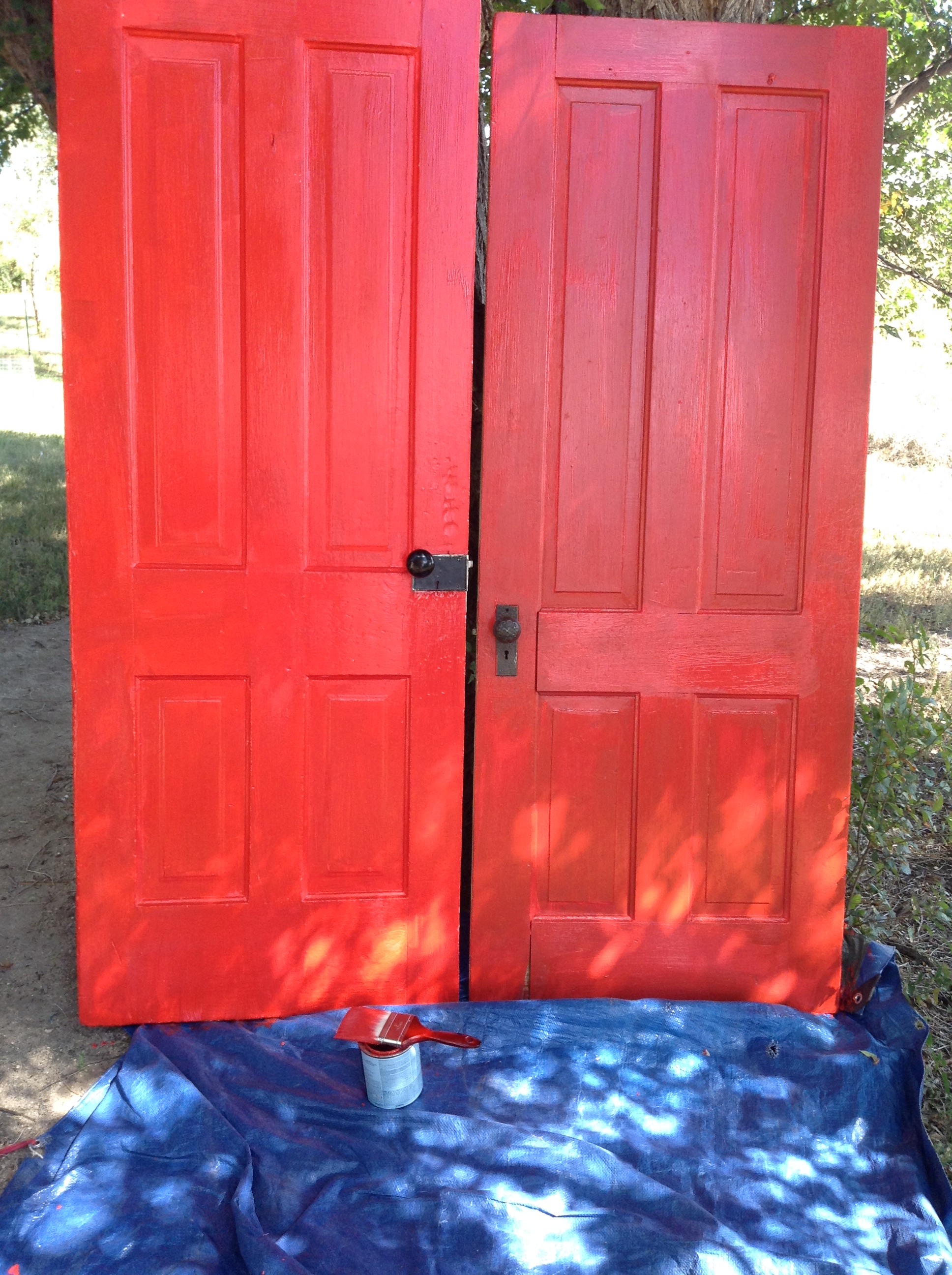 I painted them both red.  Since one door was white and one was blue, they came out different shades.  I could have painted the blue one white but I kind of like the contrast in the doors.