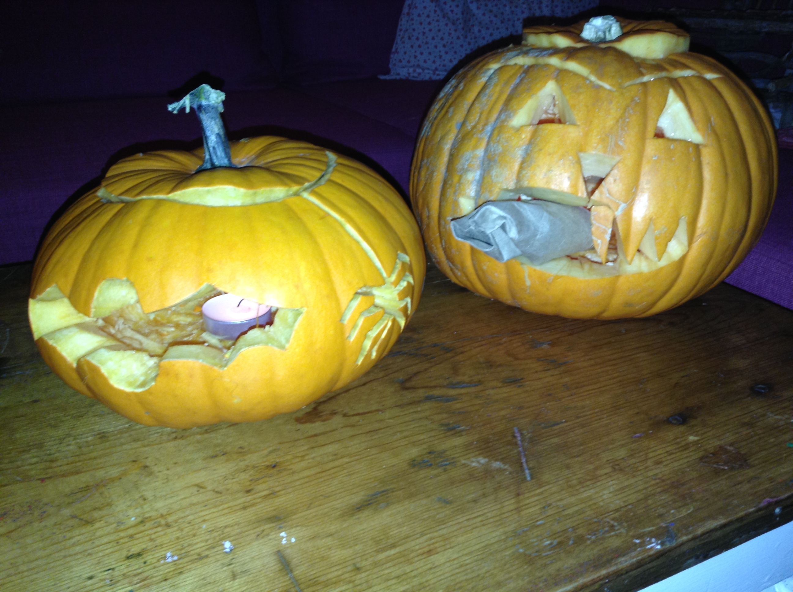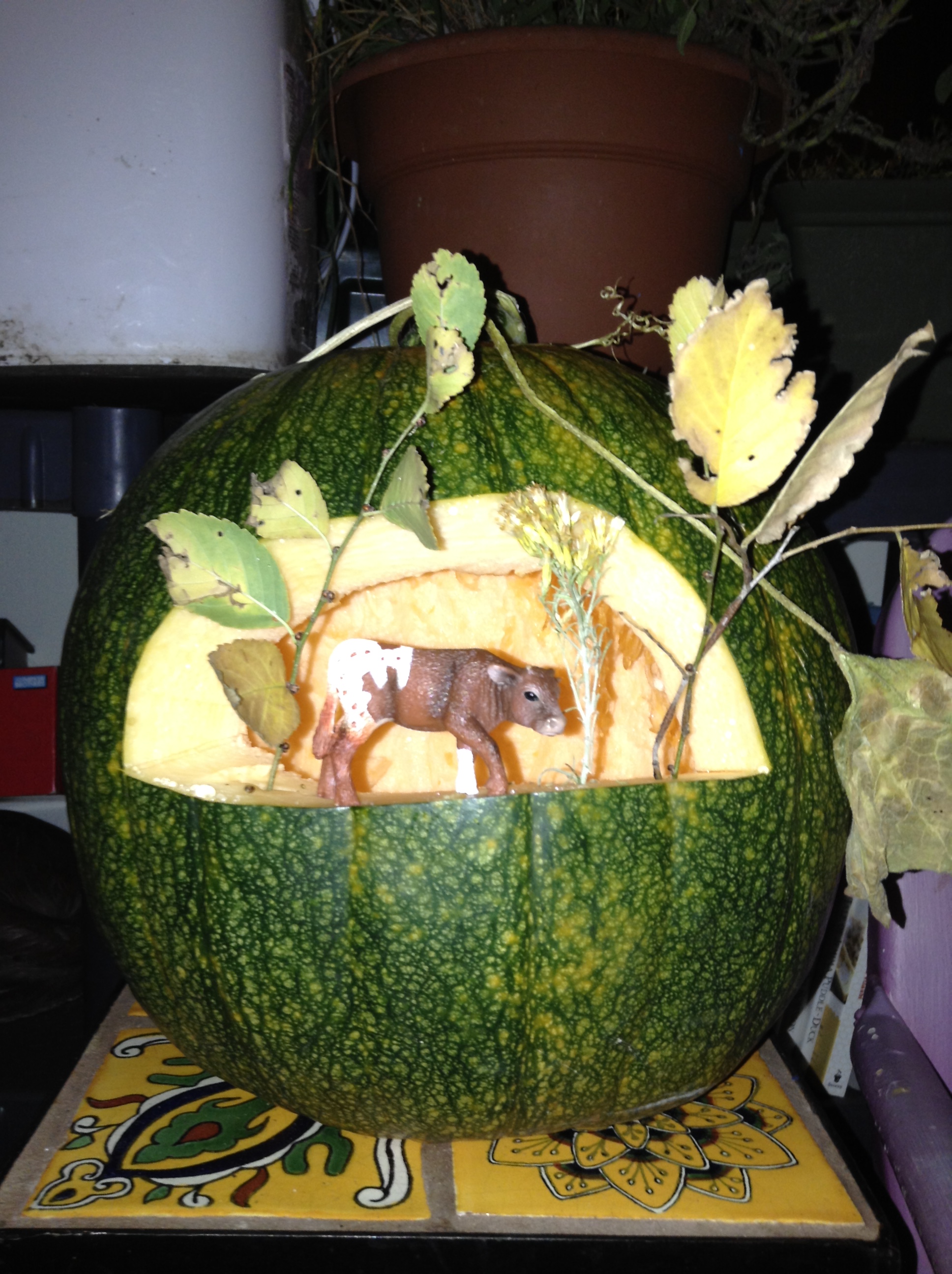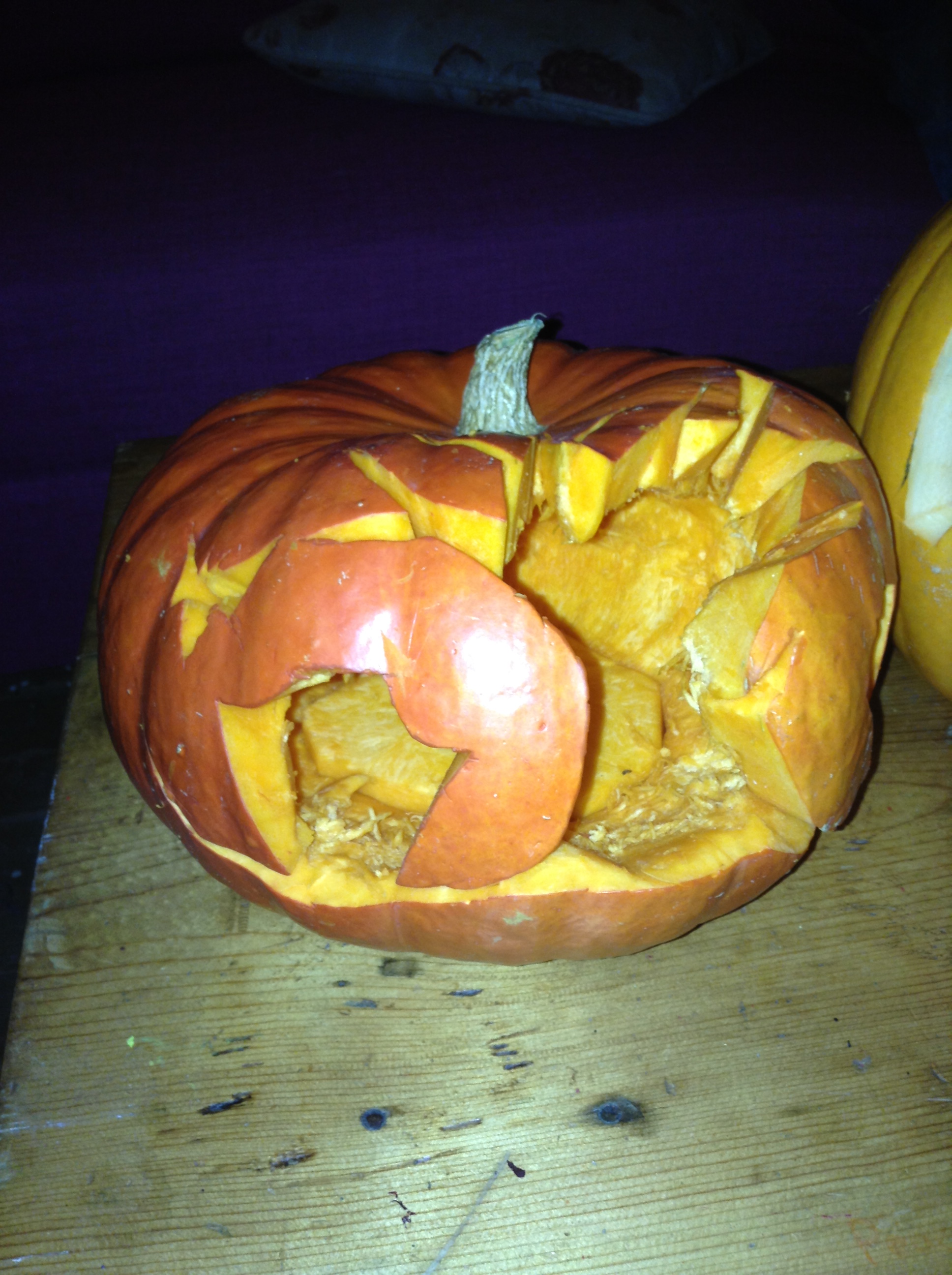 We brought over all of the pumpkins from our garden (leaving a few for the resident buck) when we moved so our house is positively overflowing with a bountiful crop. First dibs went to the kids that could venture out to our new house. Andy and Megan had to work but Shyanne and Dillon, Emily, Bret, and Bret’s sister Becky drove over the river and through the woods to Grammie and Papa’s new homestead to take part in a pumpkin party reminiscent of their childhood. We were babysitting Maryjane so she was already there to help me greet her parents, aunts, and Shyanne’s boyfriend.