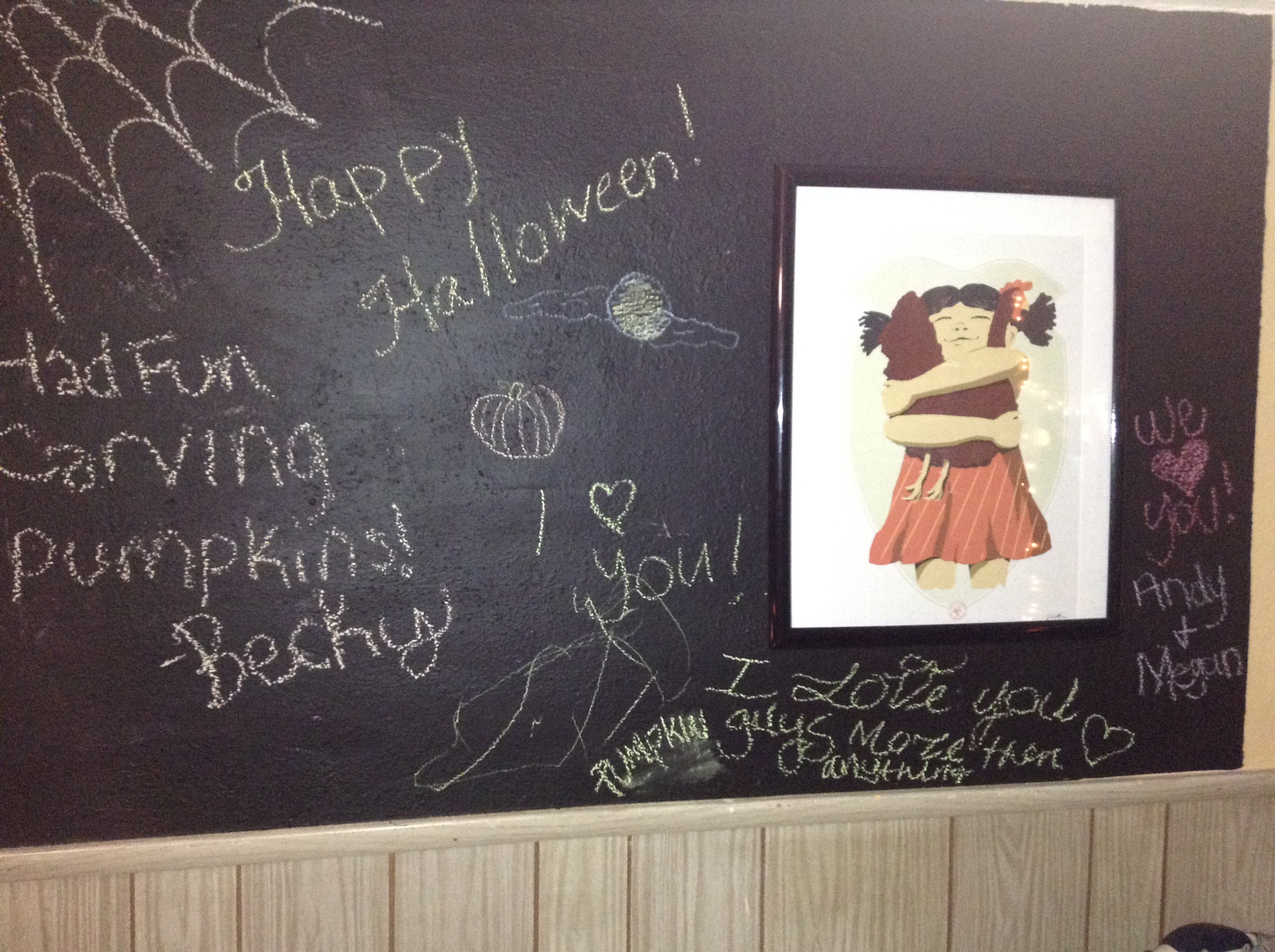 My hostess gift, the children writing on my chalkboard wall.