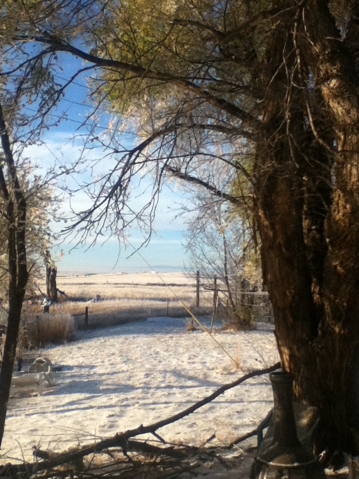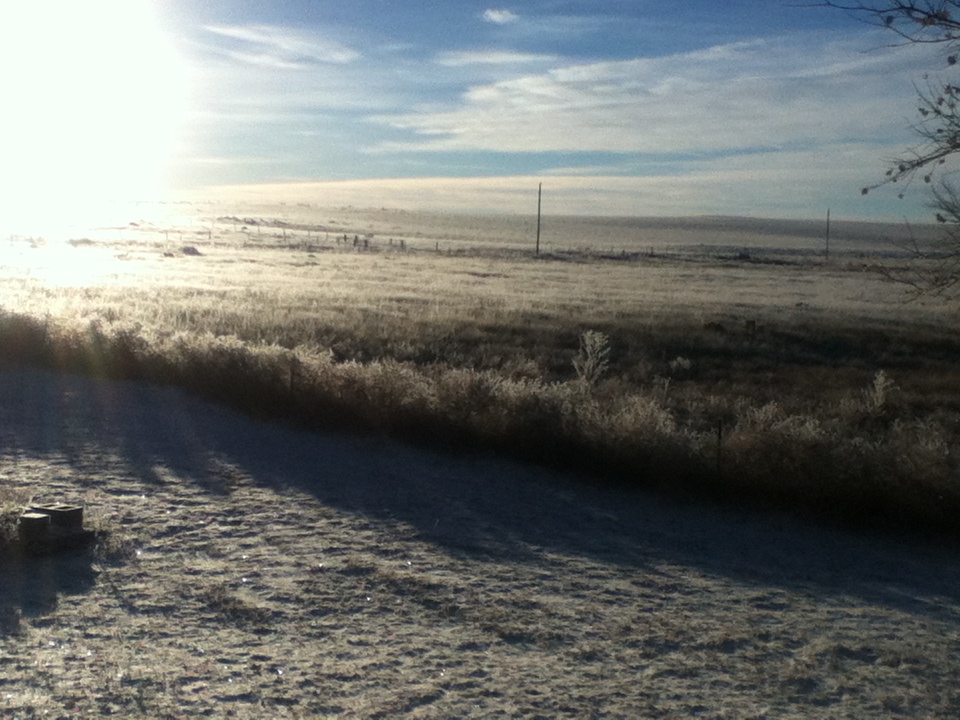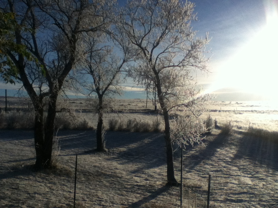 The morning rang promise.  The air outside twenty degrees and the inside of the house had warmed to forty eight.  But the sun shone so brightly, so gloriously this morn and I found that the prairie’s cold edges had been softened by an overnight snowfall that left the spance of barrenness now dancing with tiny diamonds, facets of crystals, sunlight, and festivity.  I let out an exhale.