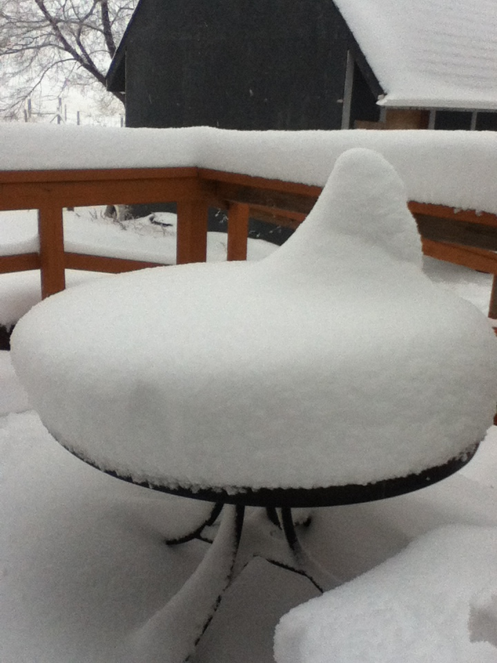 The snow began to fall thick and blanketing as we came home last night from dropping Maryjane off with her mother. This morning a foot of snow lay glittering and peaceful across the expanse of space. Doug was insistent that we could make it to Elizabeth for him to work at the coffee shop so we did our best to get out of the driveway only to get stuck in a snowdrift a mile down the road. Our neighbor’s son came along and helped us out and we toddled back to the house ready to embrace the snow day at hand (which means housework and taxes but maybe a bit of reading and relaxing will take place too!).