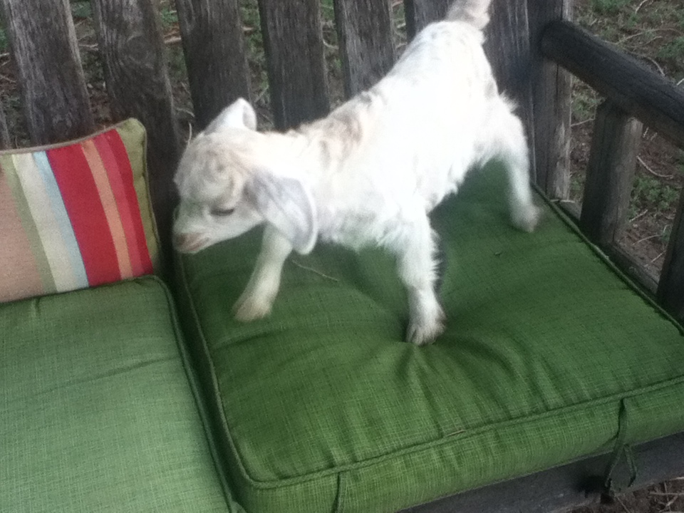 Remember near the beginning of this blog when we were kind of afraid to get goats? We loved goats after meeting one at a petting zoo while we still lived in the city. After being butted and bruised and bullied by our friend’s goats while pet sitting we questioned whether we still wanted goats. Her goats were rescues, males, had horns, and were not neutered. We looked like good candidates for wresting, apparently. So, we thought maybe all big goats were like that and wanted as small as ones as we could find.