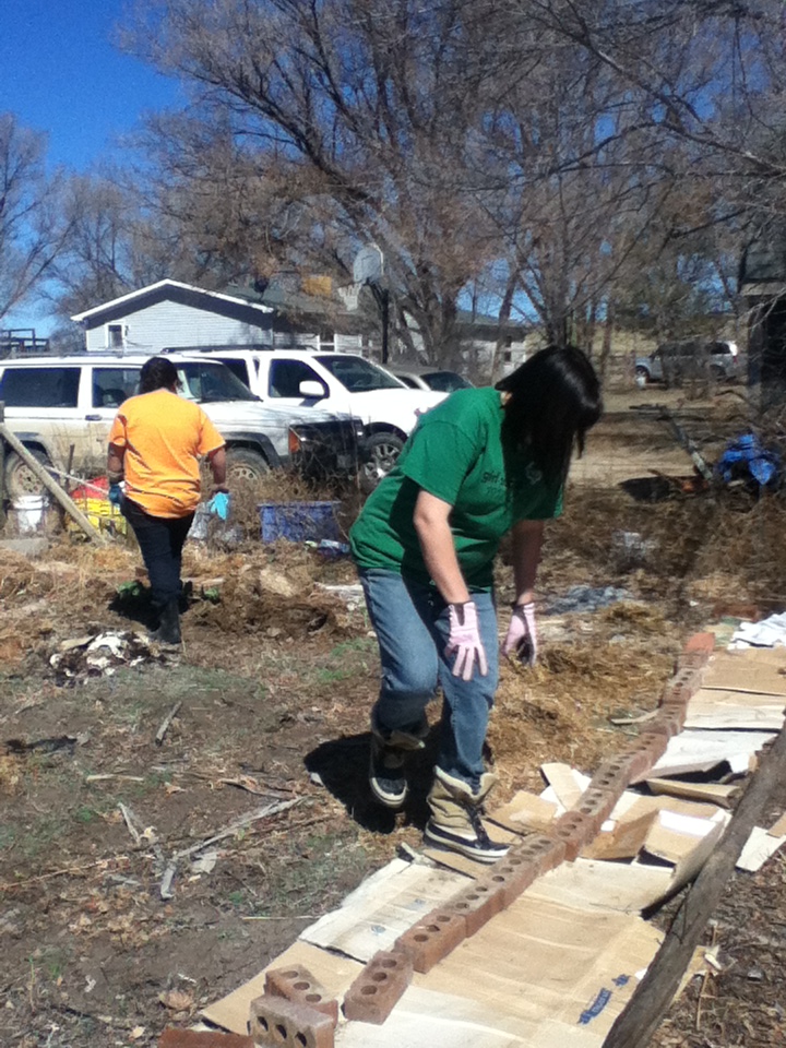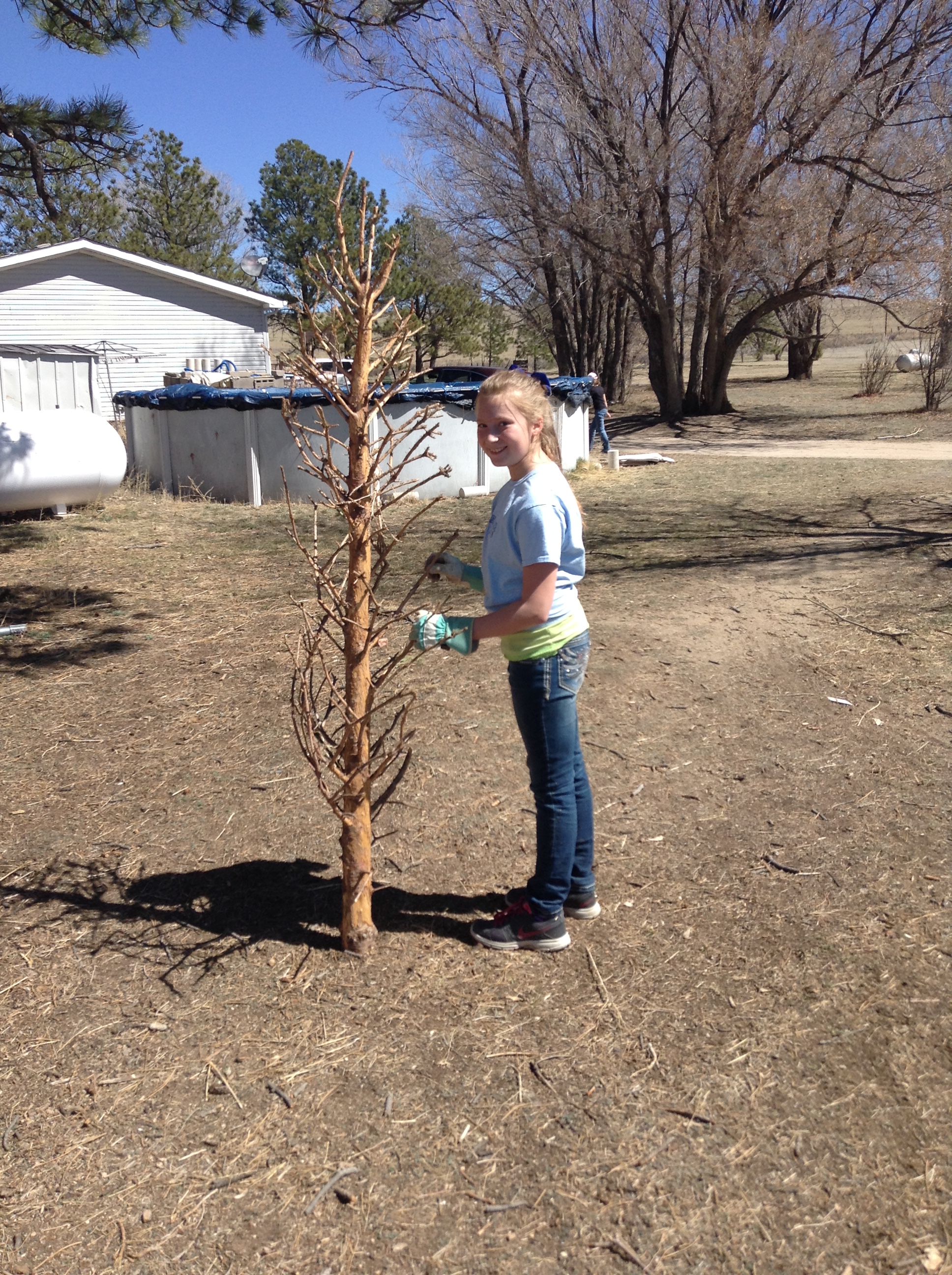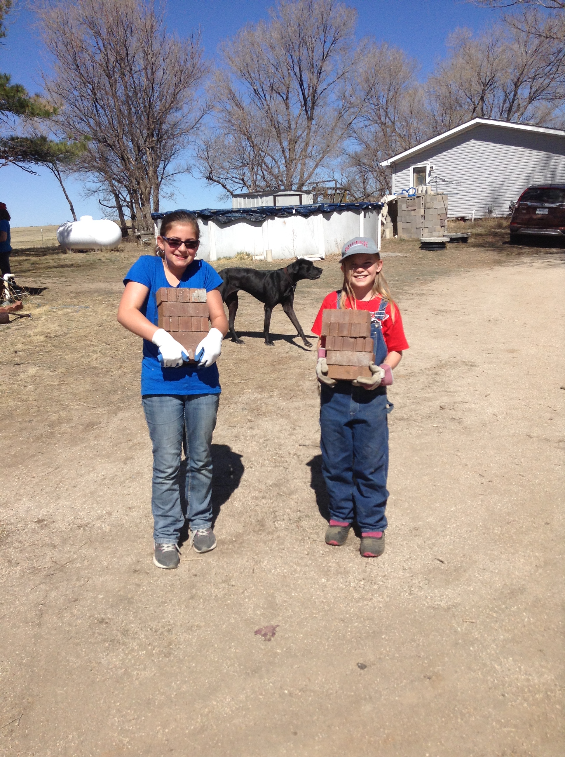 The girl scout leaders, the girls, and I worked diligently under the first hot day of spring to create a masterpiece. We brought over loads of bricks from the side of the outbuildings and made wavy streams of paths. Discarded wood and branches lined the way. I dared the girls to find the most creative piece to line the beds with. My Christmas three that the goats stripped clean now lines of the beds!