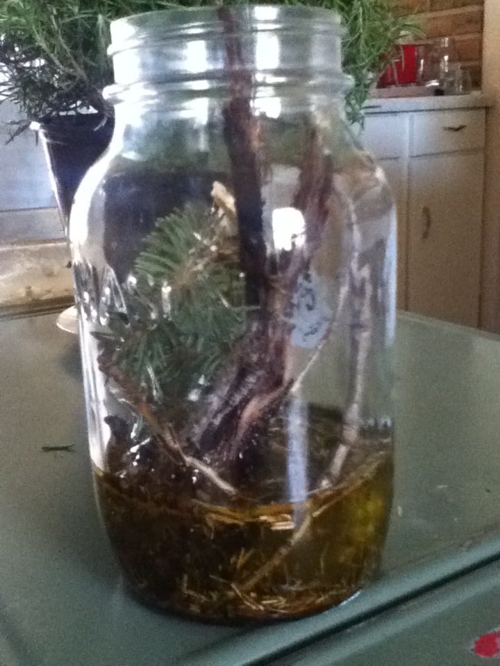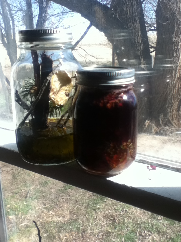 I found myself among the cottonwoods and willows.  I was probably there all along.  I looked up into the high tree tipped with buds, the sun filtering through thick branches.  I quietly filled my jar with buds and twigs.  A bit of bark.