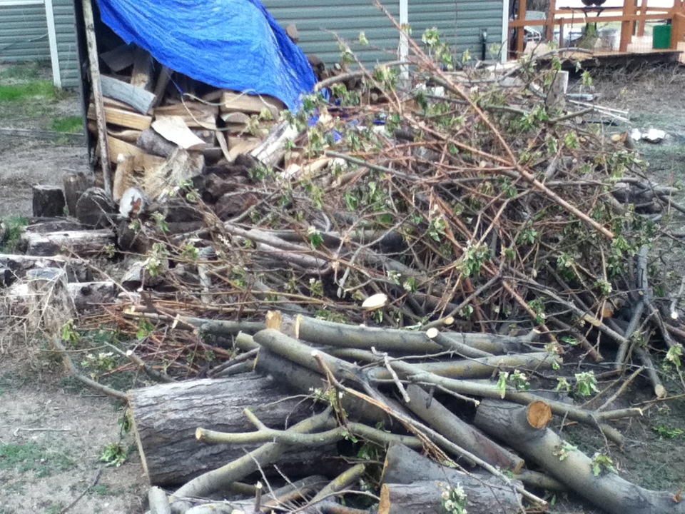 Just a few homesteader necessities! When Doug’s sister said that her beautiful crab apple tree had finally fallen over due to a storm we didn’t waste time getting down there to retrieve the wood! Wood is necessary on a homestead with wood stoves. This year we would like to not use the propane (hello heart attack when you see the bill and it doesn’t even heat the room) and not freeze our booties off.