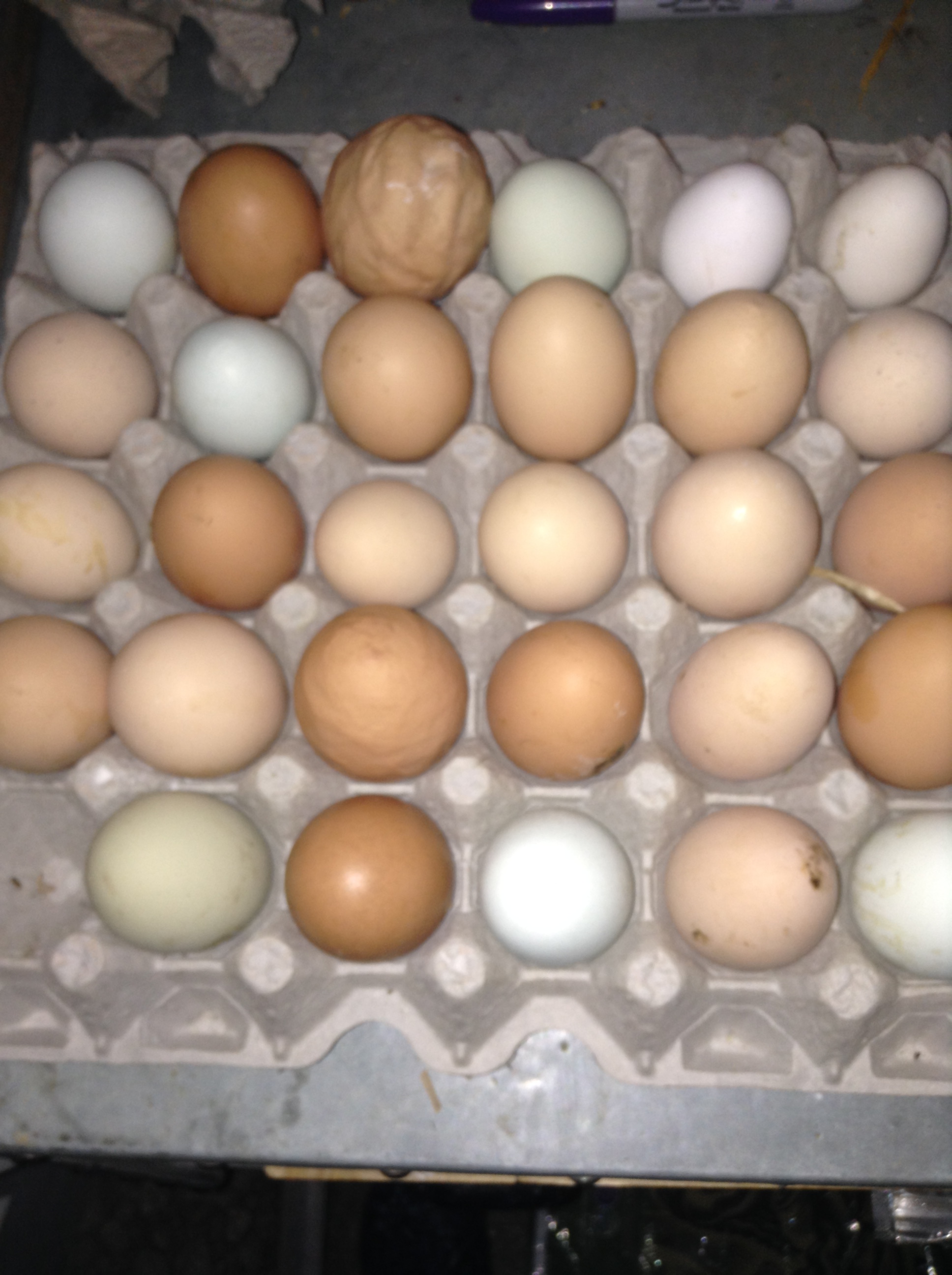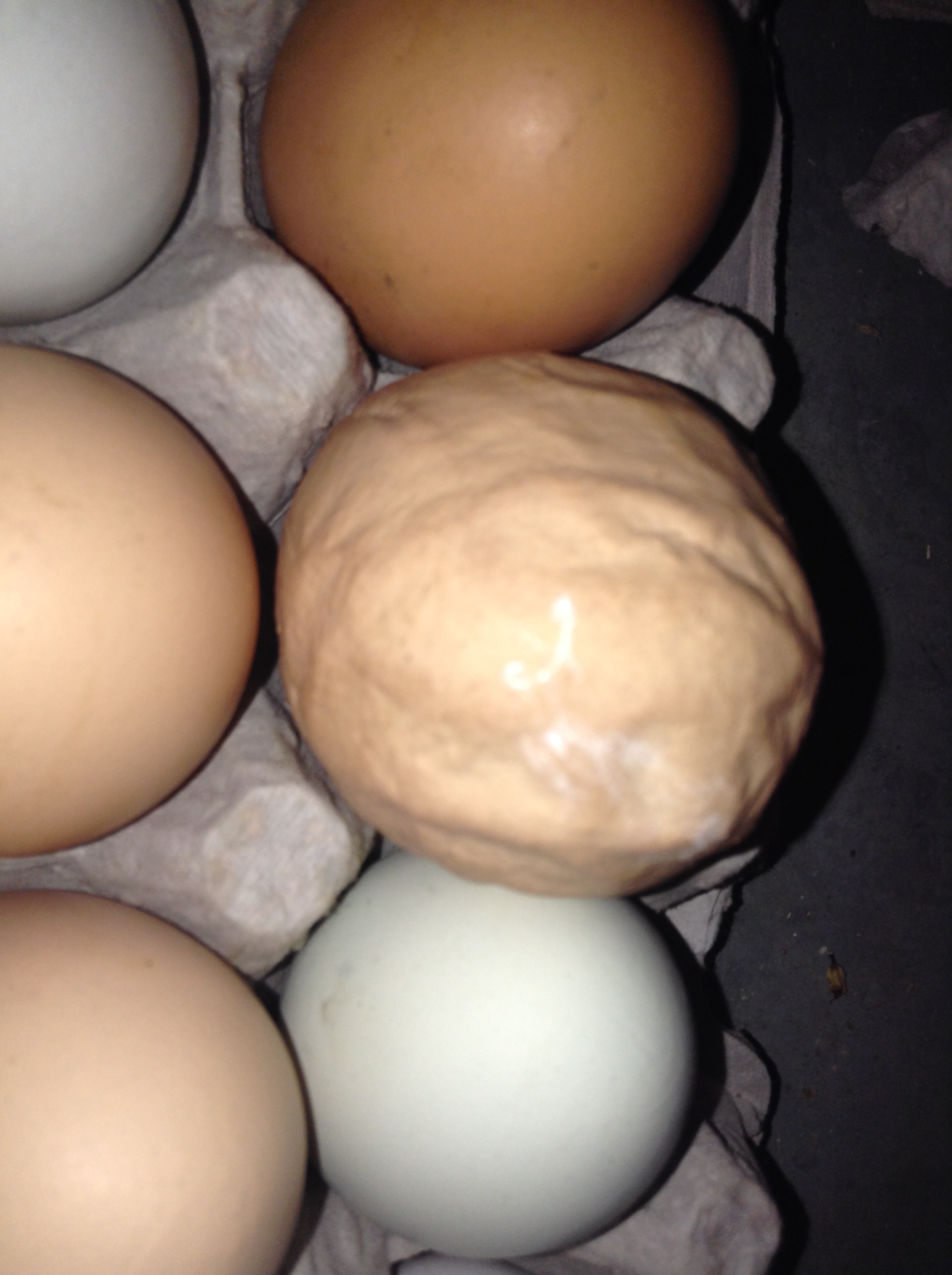 On a brighter note, look at this egg! This is Peep’s egg. She was our first chicken (also named by Shyanne) and continues to lay these outrageous paper mache eggs due to her age. It’s a lucky egg! Should you find it in your carton think of sweet Peep.