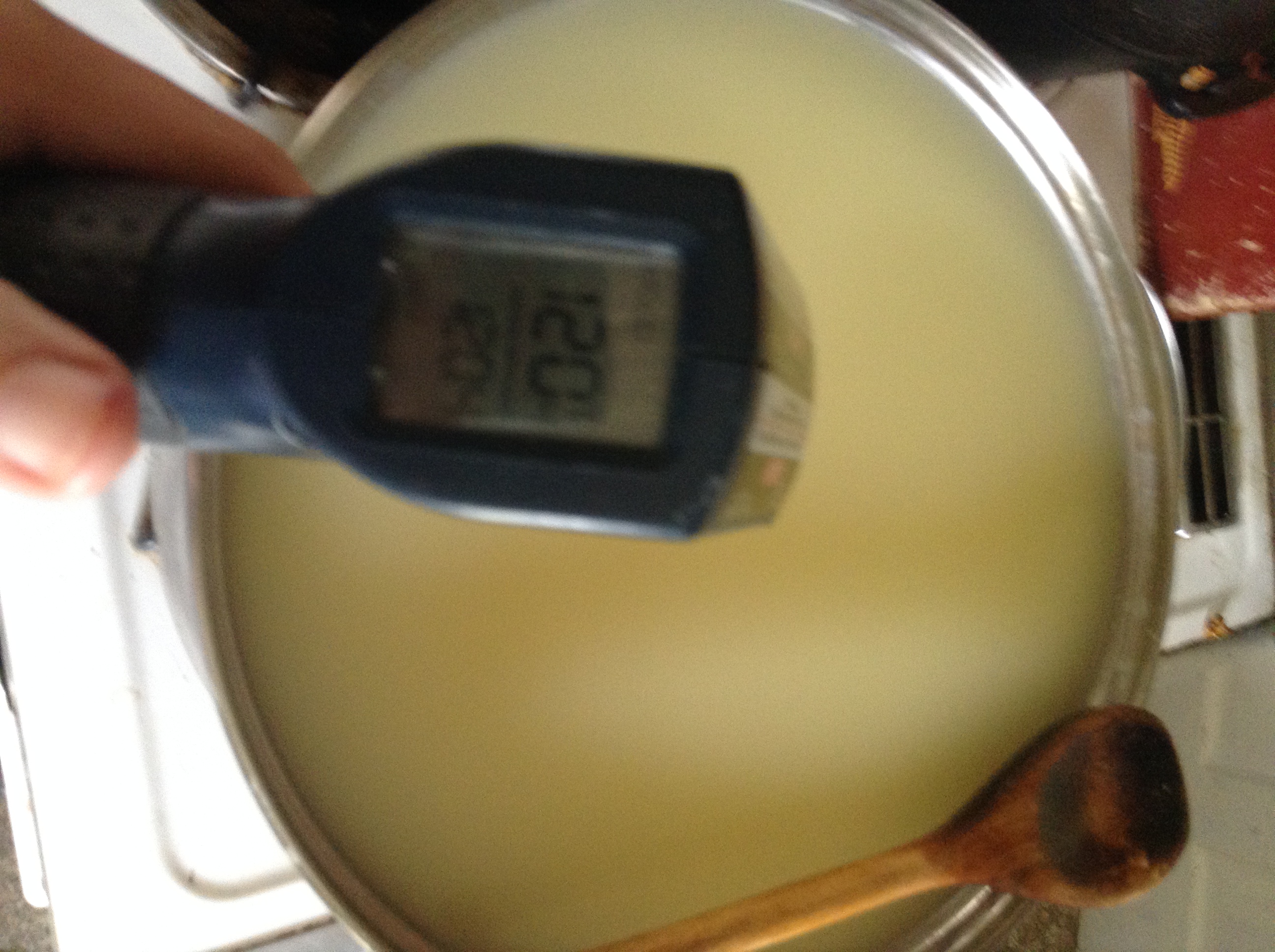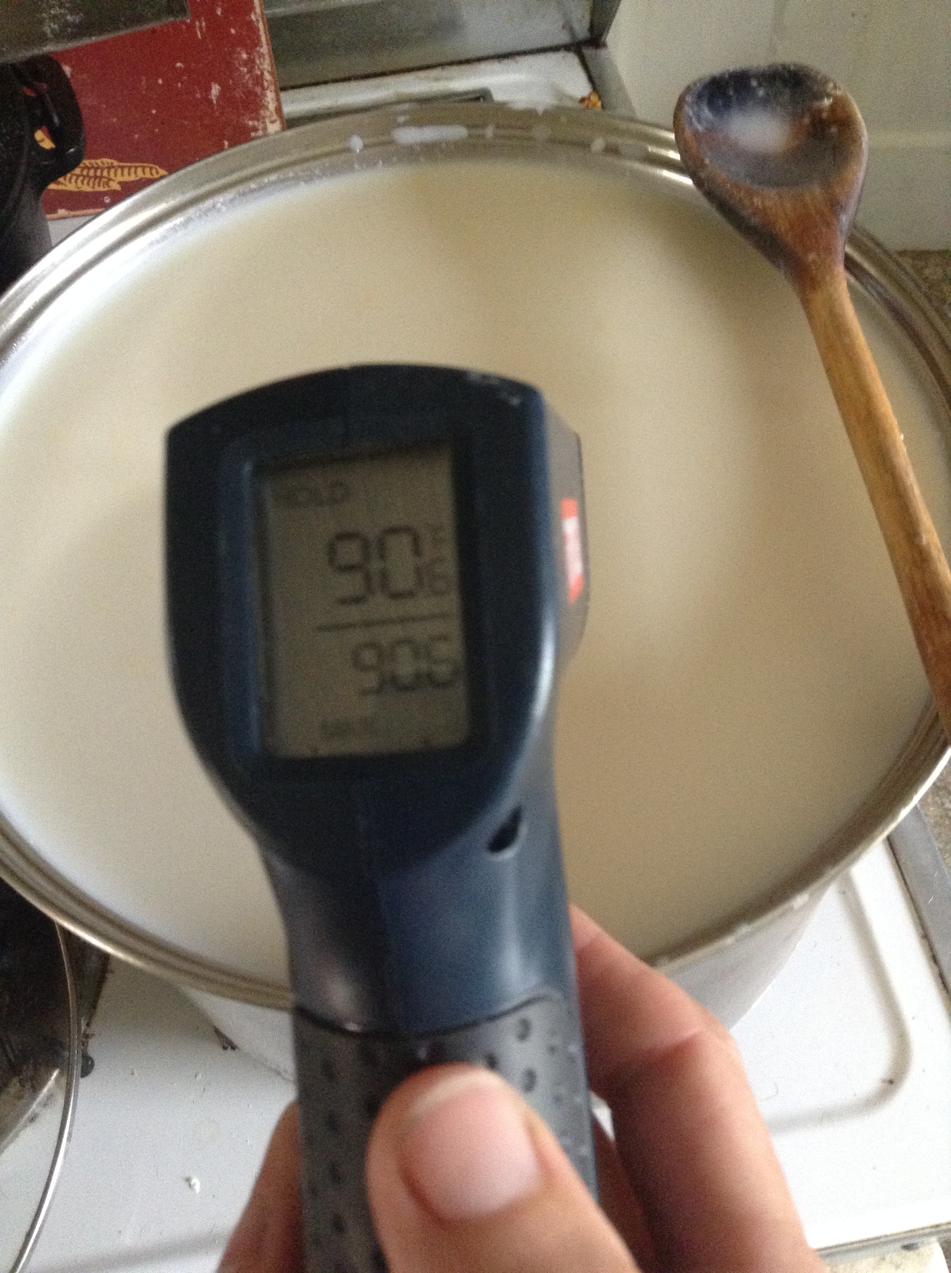 Just keep raising or lowering the heat and checking with a laser thermometer to maintain temperature. Not too hard, I promise! If you get up 2 or 3 degrees, just turn the heat down a little..
