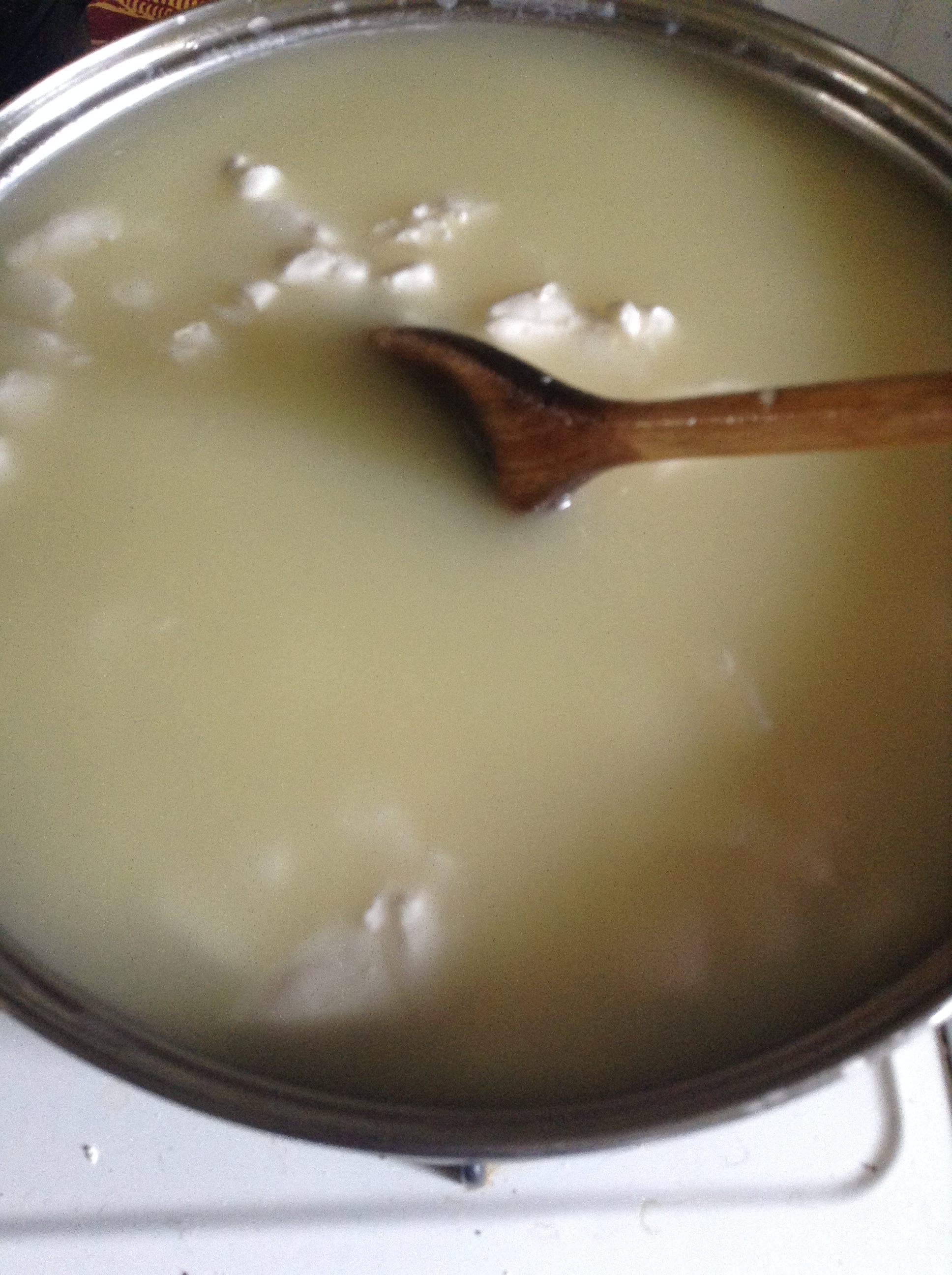 Now here comes the part about patience and the reason I didn’t think I would enjoy cheese making, but I do love it and I do love cheese, so this here is a labor of love (for cheese). Stirring near constantly we have to finagle the stove so that we can raise the temperature one degree every minute for thirty minutes. Most other cheeses we have to do this in a sink of water and add copious amounts of hot water to achieve this effect, but this one allows us to use the stove and cheat a little.