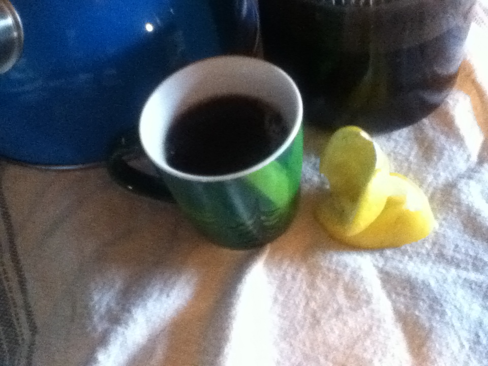 My friend, Nancy (dang, I miss that woman!), taught me to use lemon peel. She learned it in Italy. She rubbed the lemon peel on the lip of the cup before taking a sip of the dark, rich drink. It didn’t sound like it would be a good pairing but it was. A burst of sweet and tart and rich and earthy in one small, timeless sip. This is best enjoyed on a patio, or under a tree, or with friends. A little pick-me-up before the second round of farm chores.