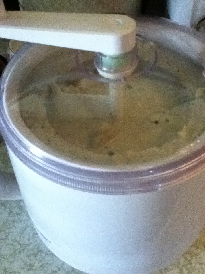Process according to manufacturer’s instructions depending on what kind of ice cream maker you have. Doug bought me a hand cranked (so much easier than the one of my childhood though) ice cream maker that we use.