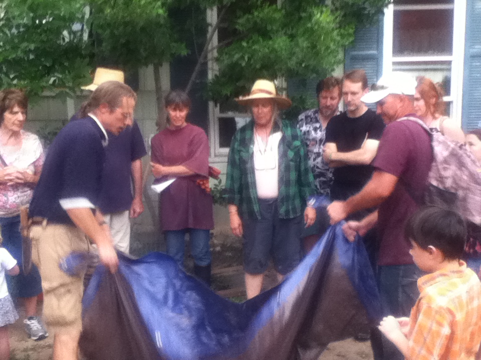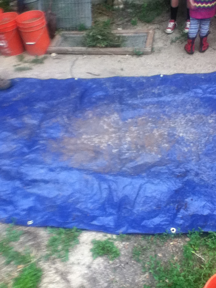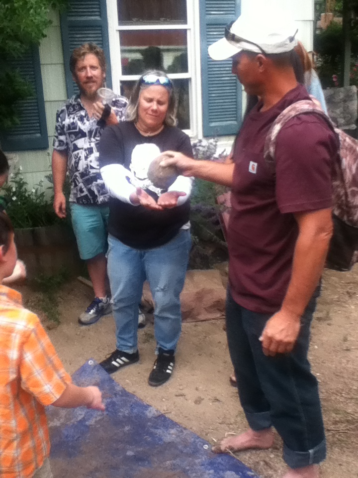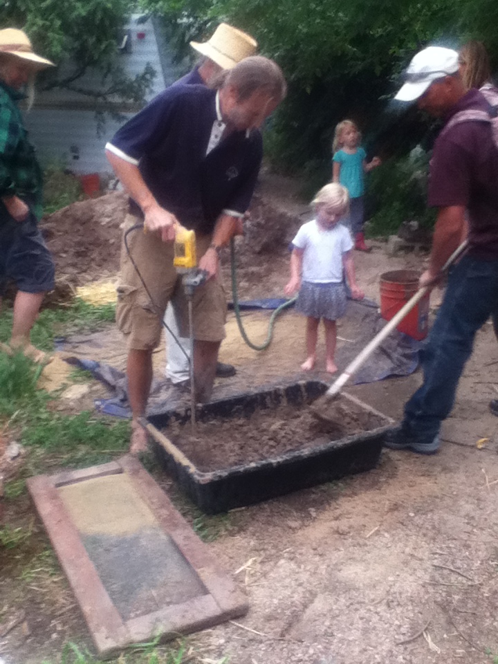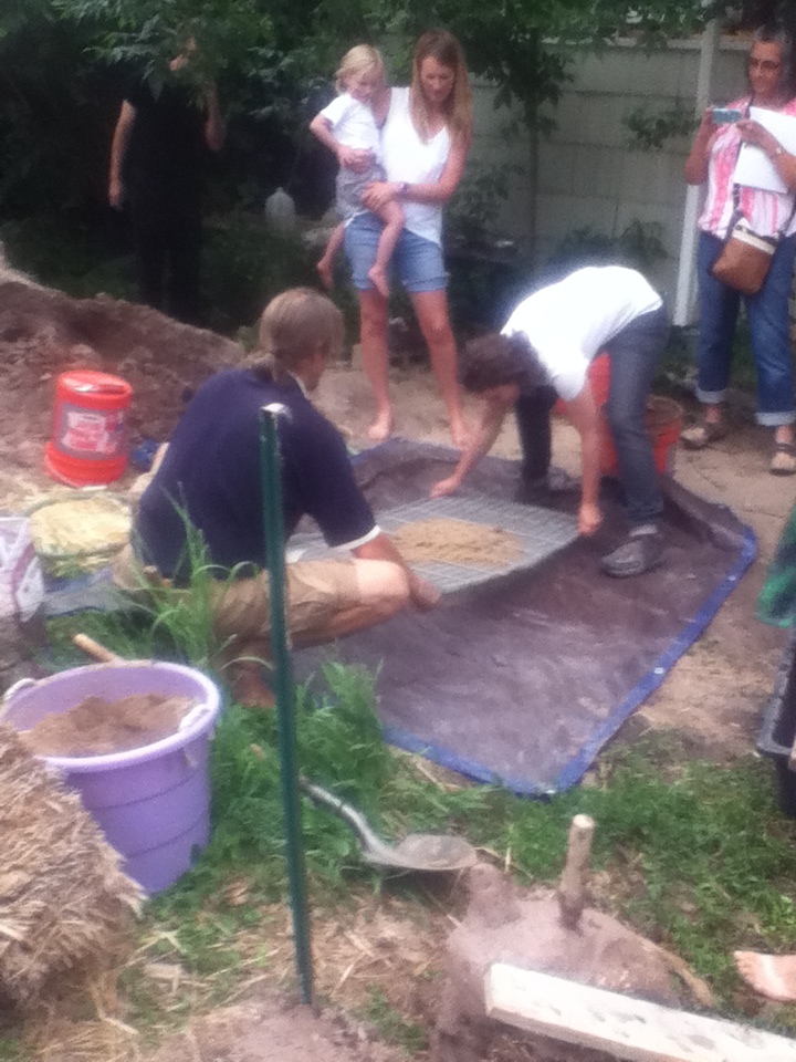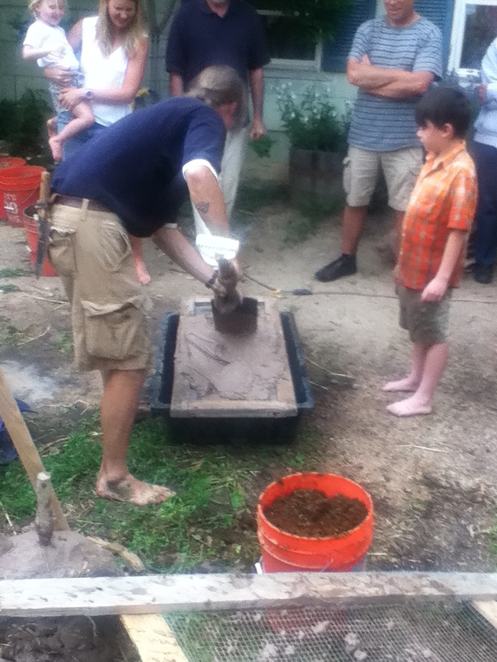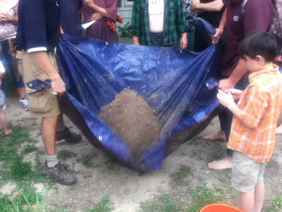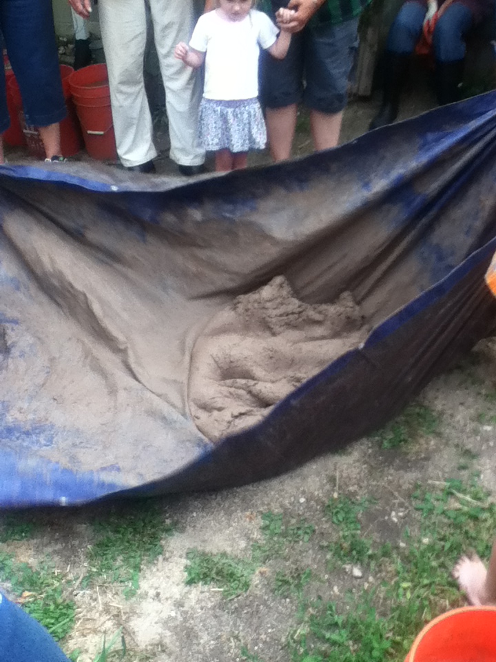 They did this until the form freely fell away from the tarp and looked like a burrito! Doug and Chris were on the other side of the crowd chatting. I could just see the ideas over yonder bubbling from them. It will be great fun building our chicken coop and bread oven and whatever else they dream up.