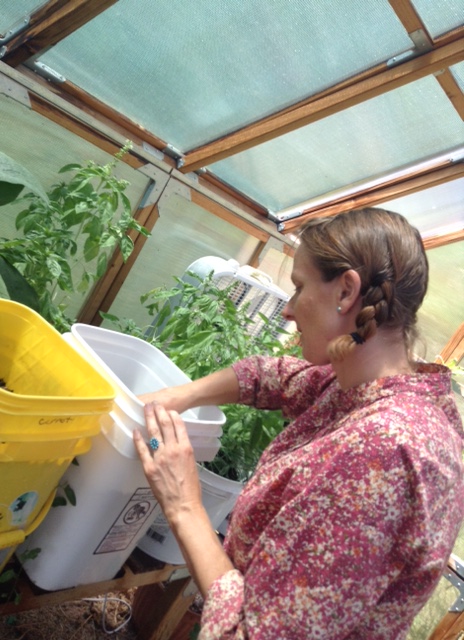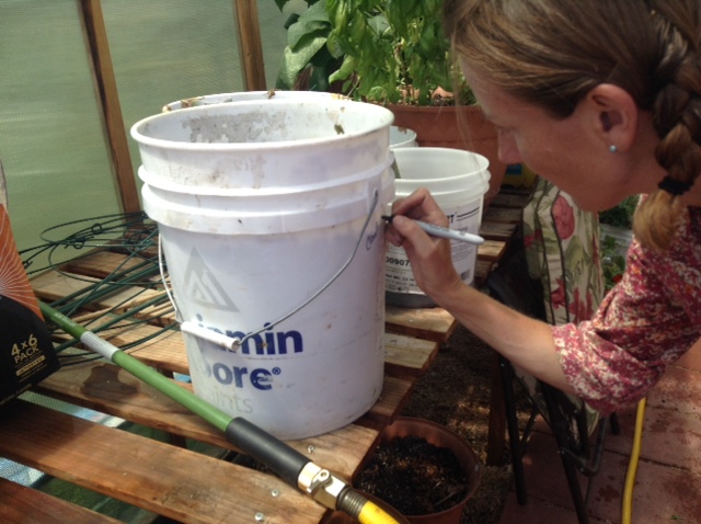 When I say pots, I mean the three or five gallon buckets I got for free from the Walmart deli and empty cat litter containers. This is also not fresh potting soil, this is the same soil I poured in this spring and some of it is from last year. Next year I will pour this year’s soil into a garden space and refill the pots to keep the nutrients in tact or we will create our own soil on this blog. That would be fun, wouldn’t it?