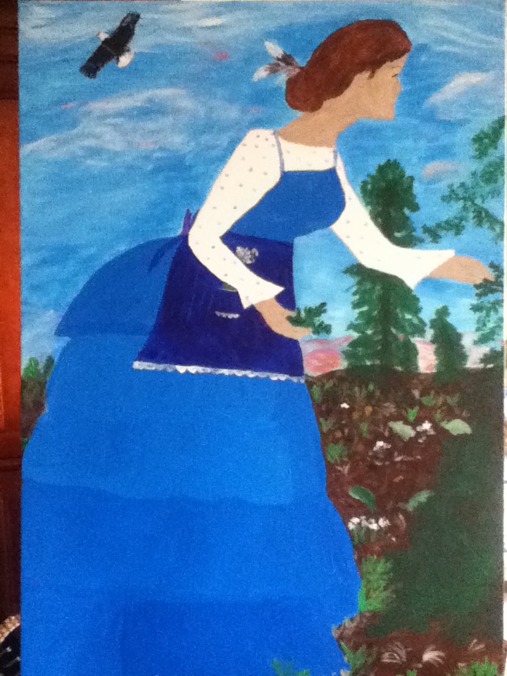 If this painting doesn’t sell at the art show it will be hanging in my new shop. A name was chosen. Doug thought The Farmgirl Store but I imagined that folks would come in expecting alpaca yarn and zucchini. I had thought of The White Wolf but then didn’t think too much about it until the next day. I was recording memories and ceremonies for a very good friend of mine who said, “What do you think about calling it The White Wolf?”