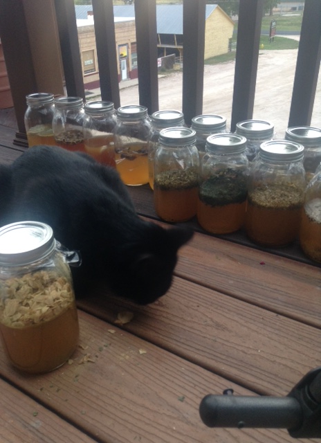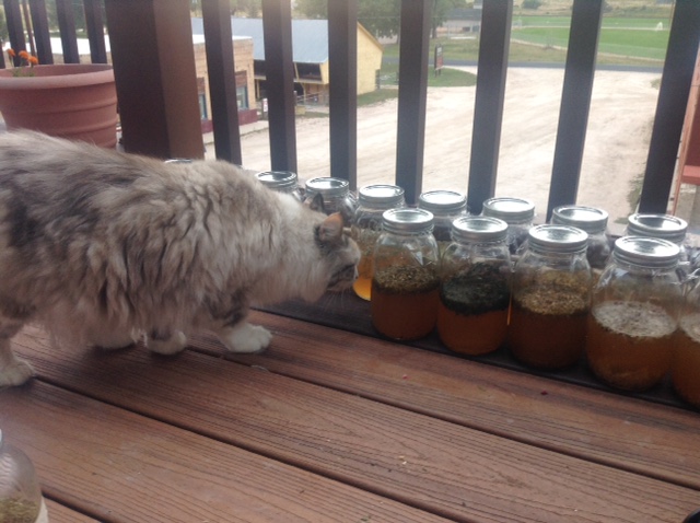 Made five dozen beautiful medicines at dawn with the help (help is relative) of my assistants. Looking for a little shop like I used to have so folks can find me.