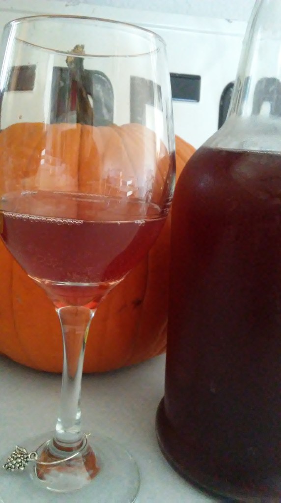 In two ounces of chokecherry wine, I added 3 ounces of cold white wine, and 2 ounces of fresh apple cider. It was a delicious fall cocktail. It was quite fun finding the lost bottle of chokecherry wine. I hope you are busy preserving. This weekend I think I will try my hand at making apple wine!