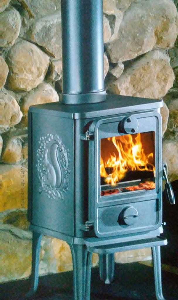I was immediately drawn to a smaller cast iron stove with a beautiful forest squirrel cast into the side. Maryjane preferred the camp style stove. We also looked at a steel stove.