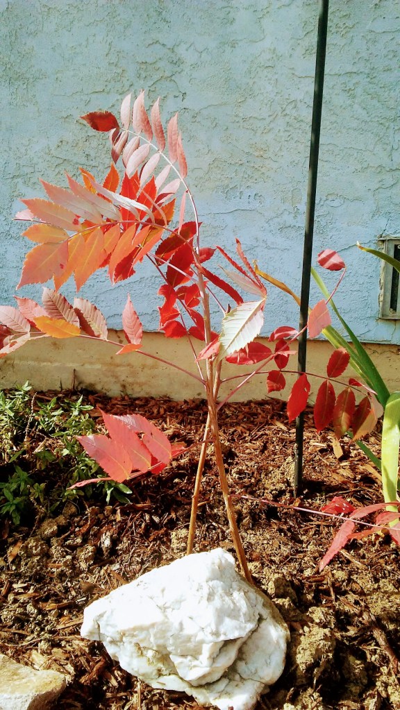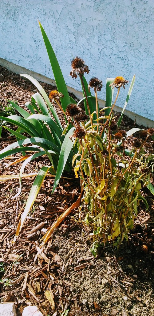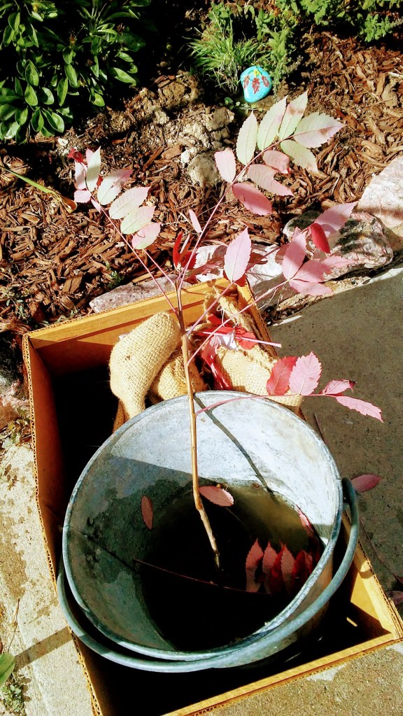 I filled a small bucket of water. I pulled up some of the Echinacea and placed it in the water. I dug up a few Sumac tree starts that had scampered away from the large trees. “Come with me, kids,” I said to the silent plants, “we are moving to a new garden.”